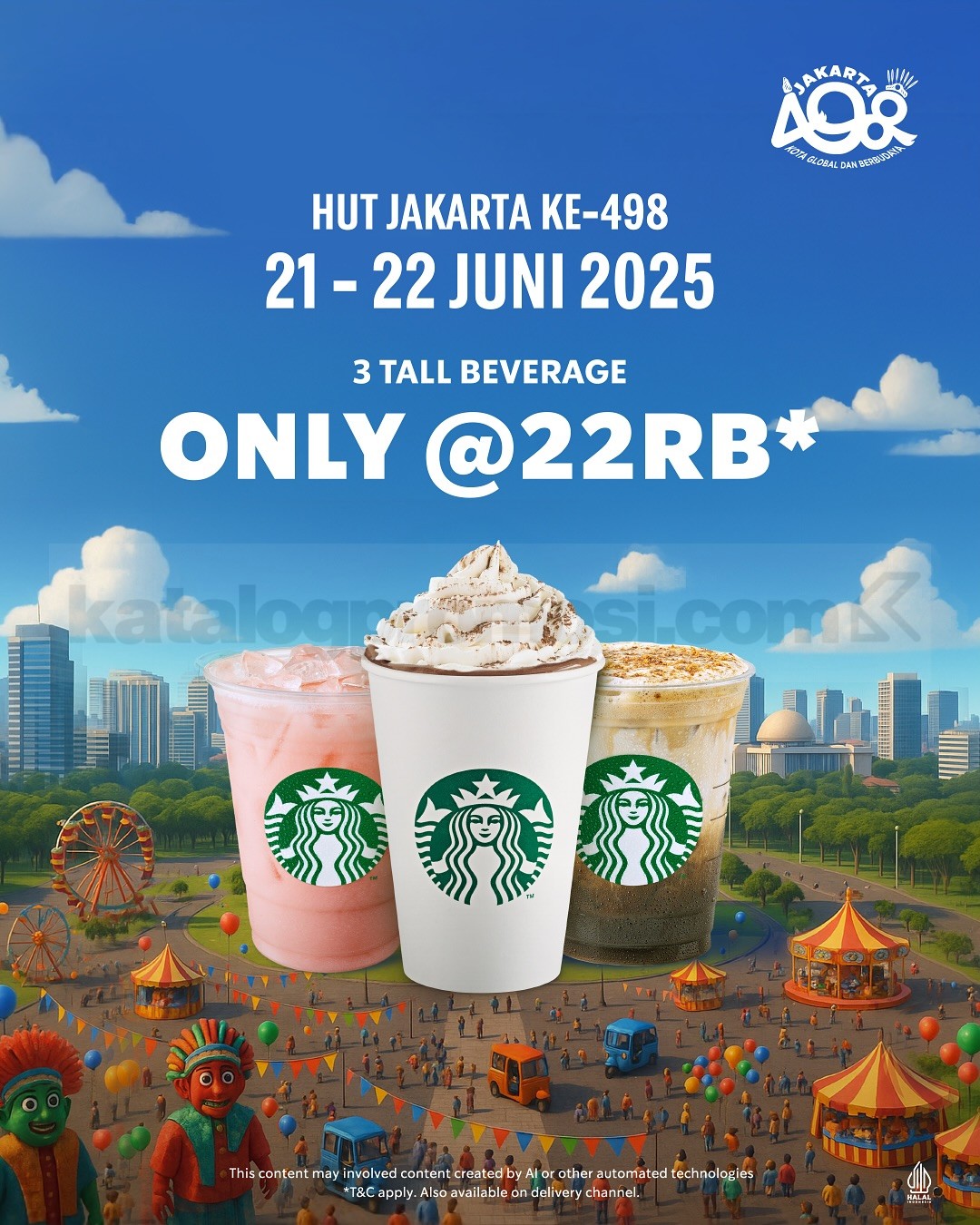 👉 Cek gambar promo Starbucks HUT Jakarta 498 3 Tall Minuman Rp66.000 di bawah ini untuk info lengkap dan cara penukarannya!