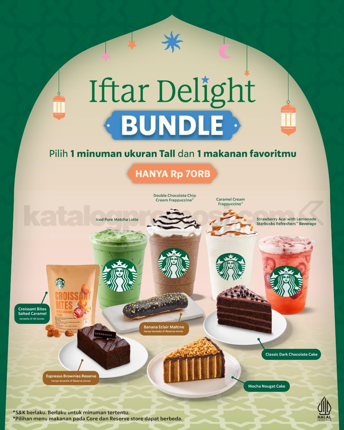 Promo Starbucks Iftar Bundle 1 Minuman + 1 Makanan cuma Rp. 70.000 paket buka puasa hemat berlaku selama bulan Ramadhan