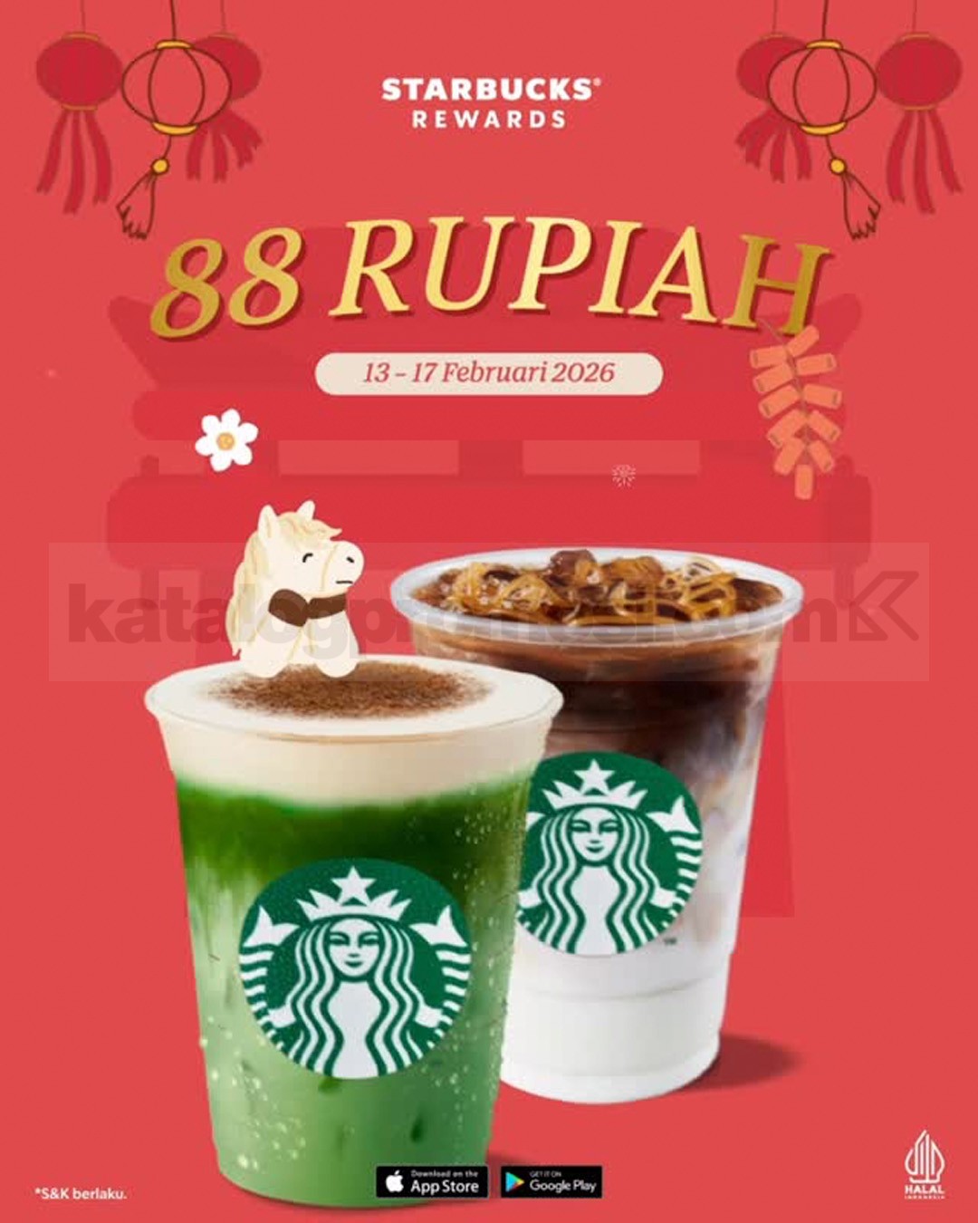 Promo Starbucks Imlek Ngopi Cuma Rp. 88,- berlaku 13 โ 17 Februari 2026 dengan e-code PROMOHOKI88 untuk minuman kedua khusus Member.