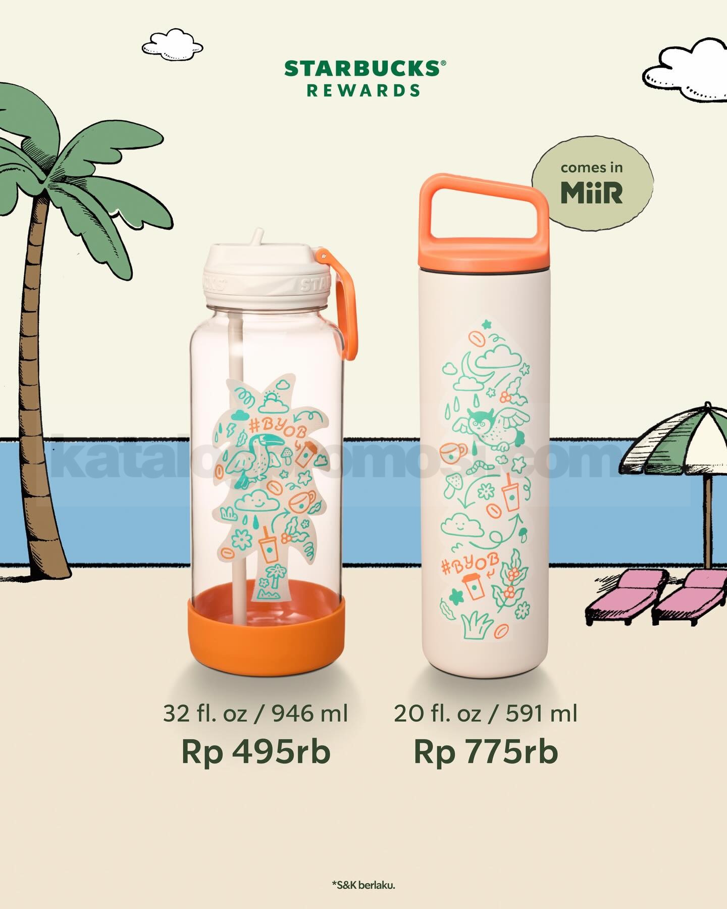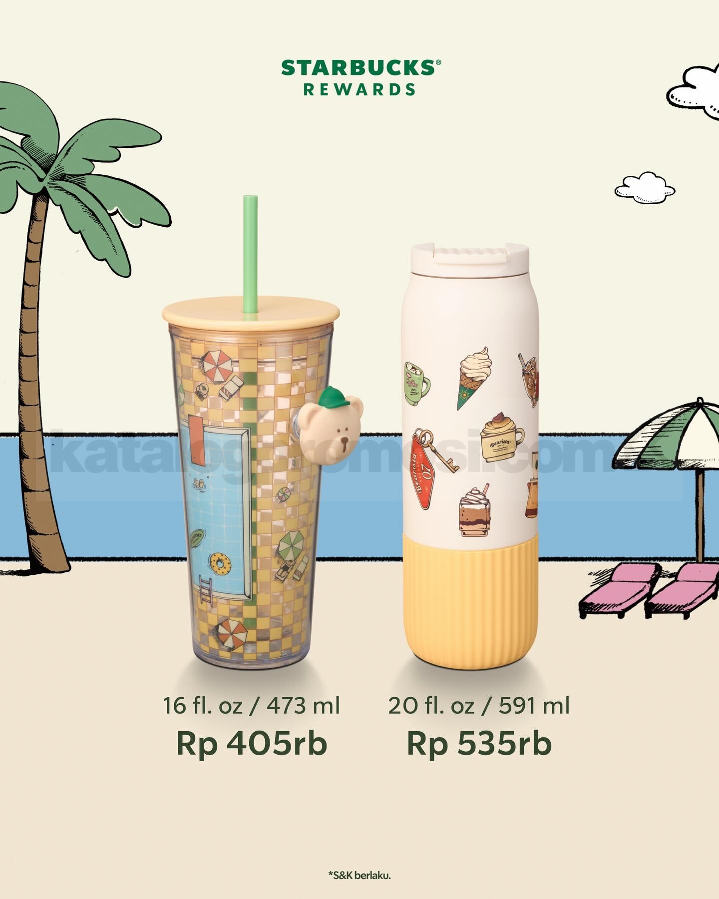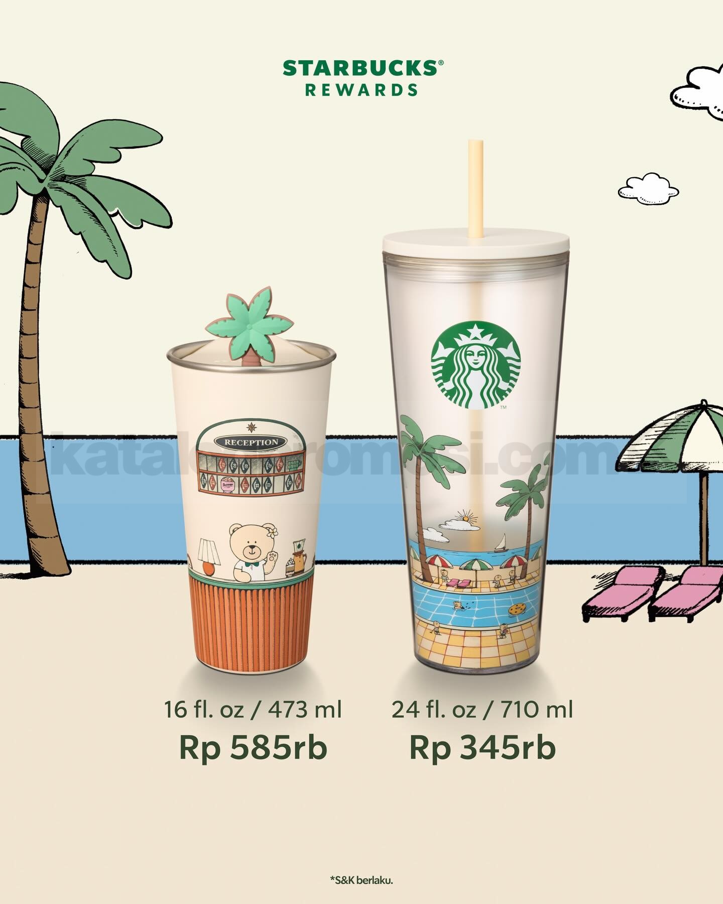 Promo tersedia selama 24 – 26 April 2026 sebagai periode early access khusus Starbucks Rewards Members di store Starbucks tertentu selama stok summer merchandise masih tersedia.