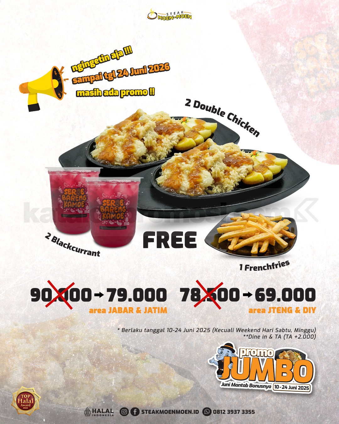 - Promo berlaku di outlet Steak Moen Moen yang berpartisipasi.