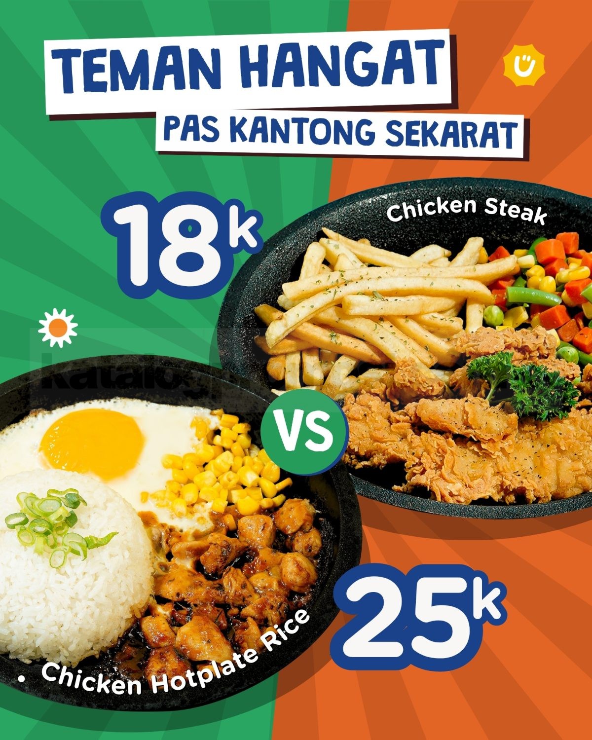 - Promo berlaku untuk pembelian menu Chicken Hotplate Rice dan Chicken Steak