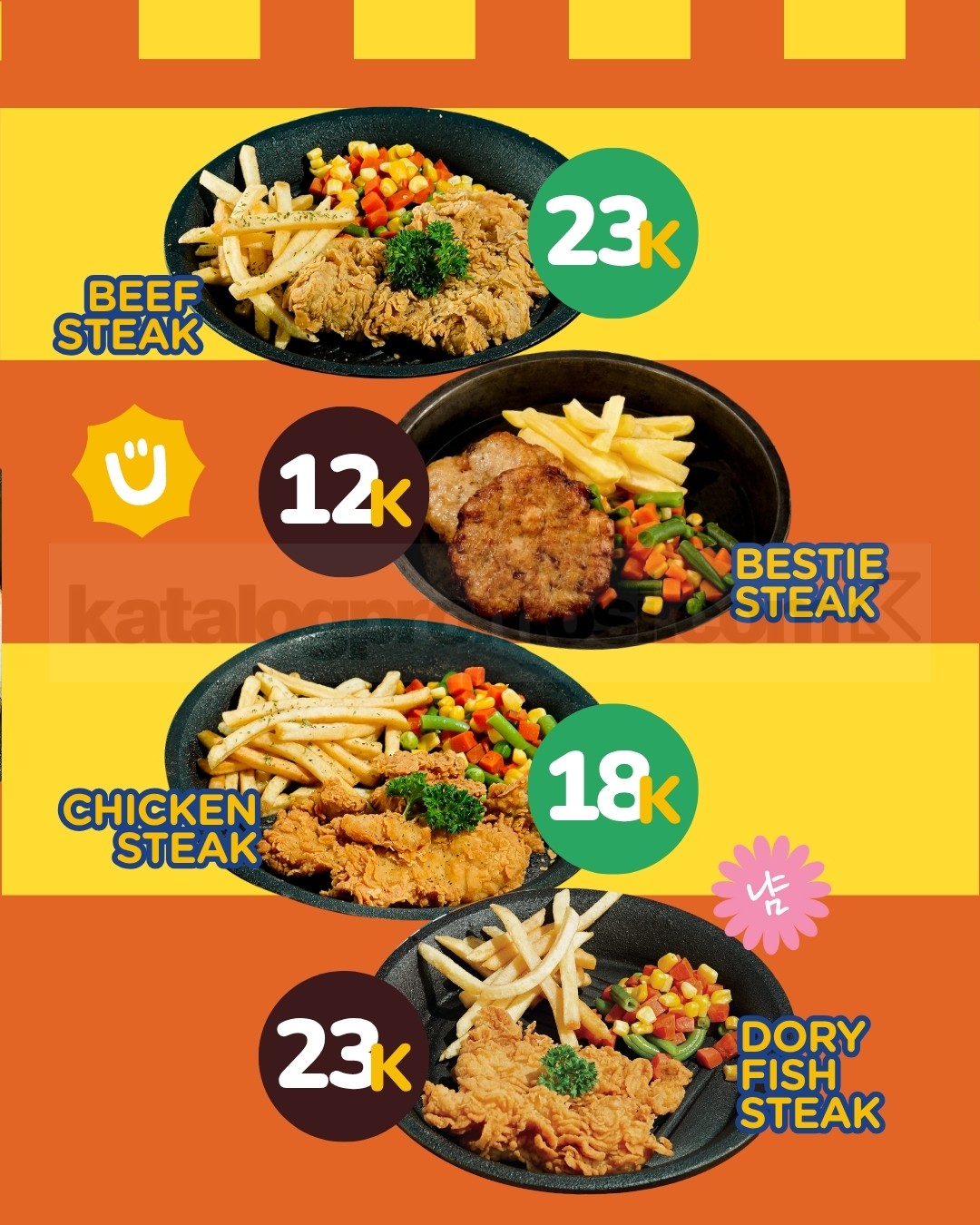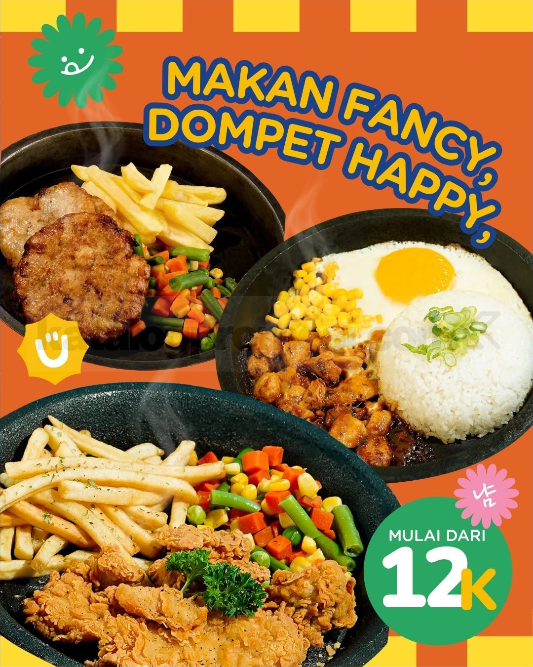 Mulai Rp.12.000 saja, kamu sudah bisa menikmati menu steak lezat dengan porsi pas yang bikin kenyang tanpa bikin kantong kering! Steak With U menghadirkan berbagai pilihan menu yang pas untuk semua selera, mulai dari Beef Steak, Bestie Steak, hingga Chicken Hotplate Rice, semua tersedia dengan harga terjangkau yang ramah di kantong. ๐ฅฉ๐๐