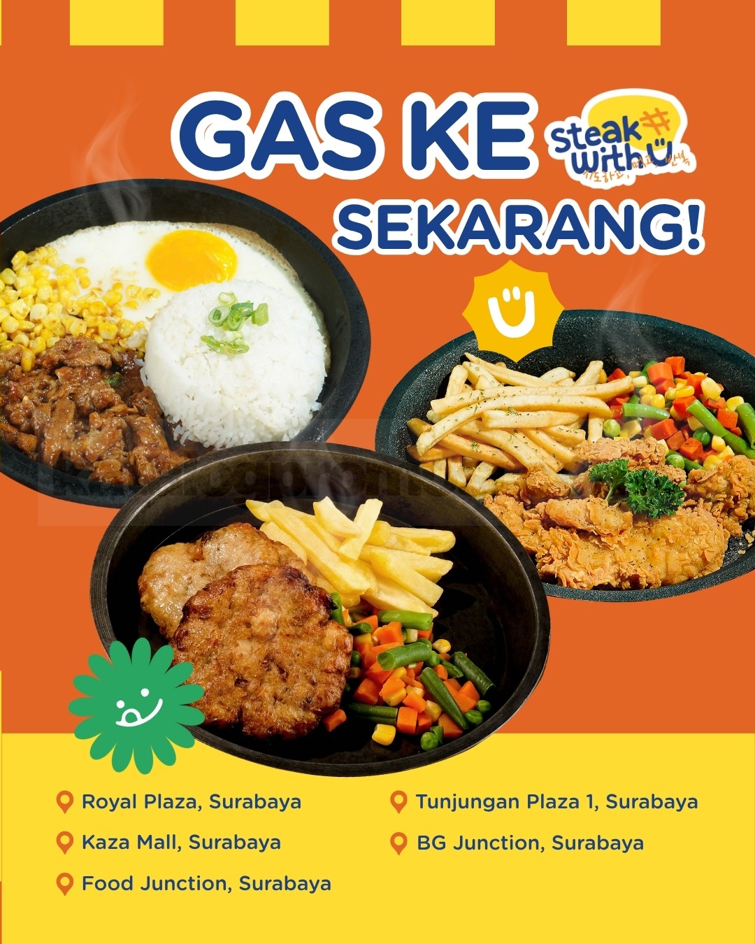 Promo Steak With U menu steak mulai Rp.12.000, nikmati porsi pas dan harga terjangkau + berlaku mulai 12 November 2025 di beberapa outlet Surabaya.