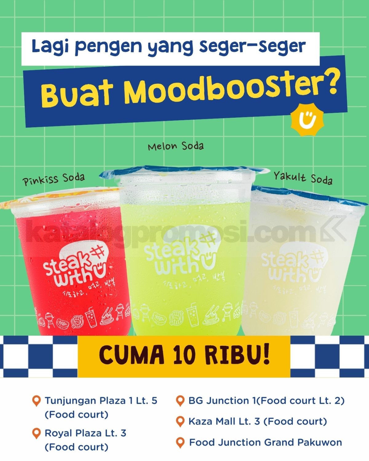 Promo ini adalah penawaran menu steak dan minuman soda dengan harga terjangkau di outlet Steak With U Surabaya.
