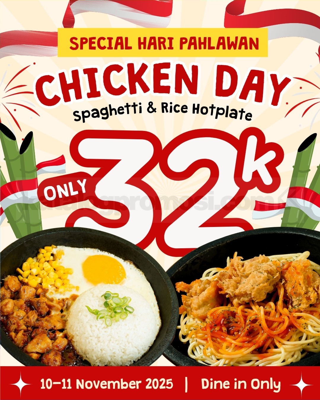 👉 Cek gambar promo Steak With U Spesial Hari Pahlawan Spaghetti & Rice Hotplate Rp. 32 Ribu di bawah ini untuk lihat detail menunya yang menggoda banget!
