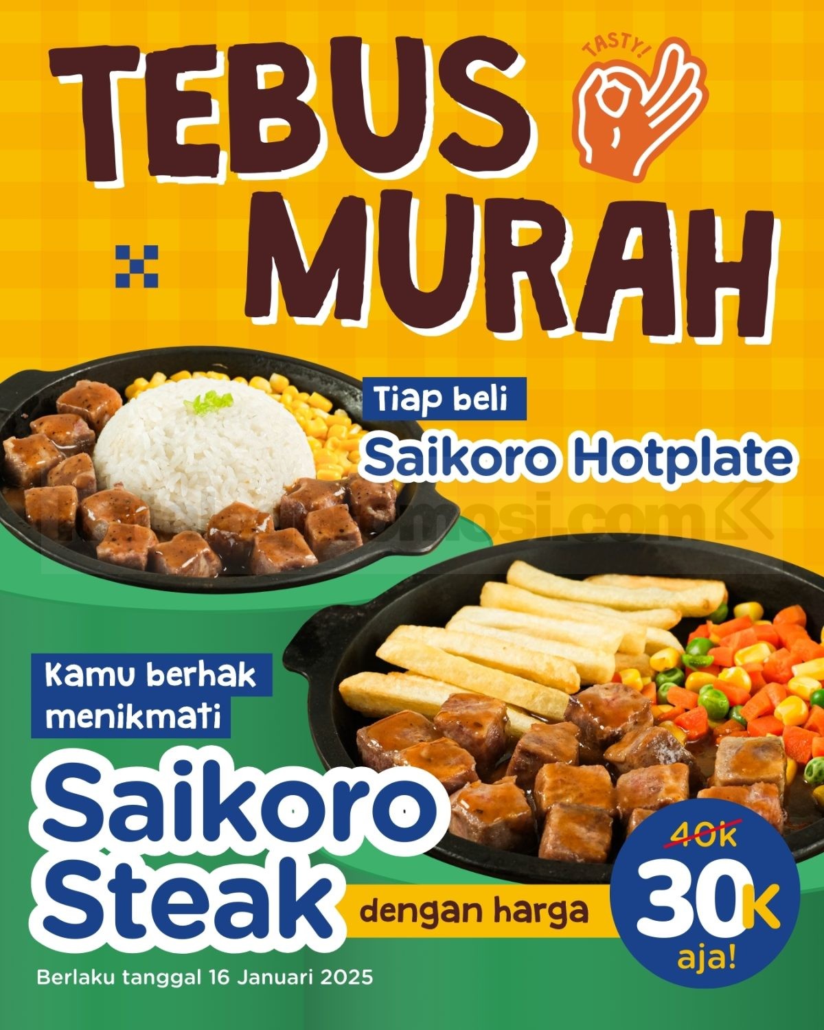 👉 Cek gambar Promo Steak With U Tebus Murah Saikoro Steak di bawah ini untuk lihat info menu dan detail singkat promonya.