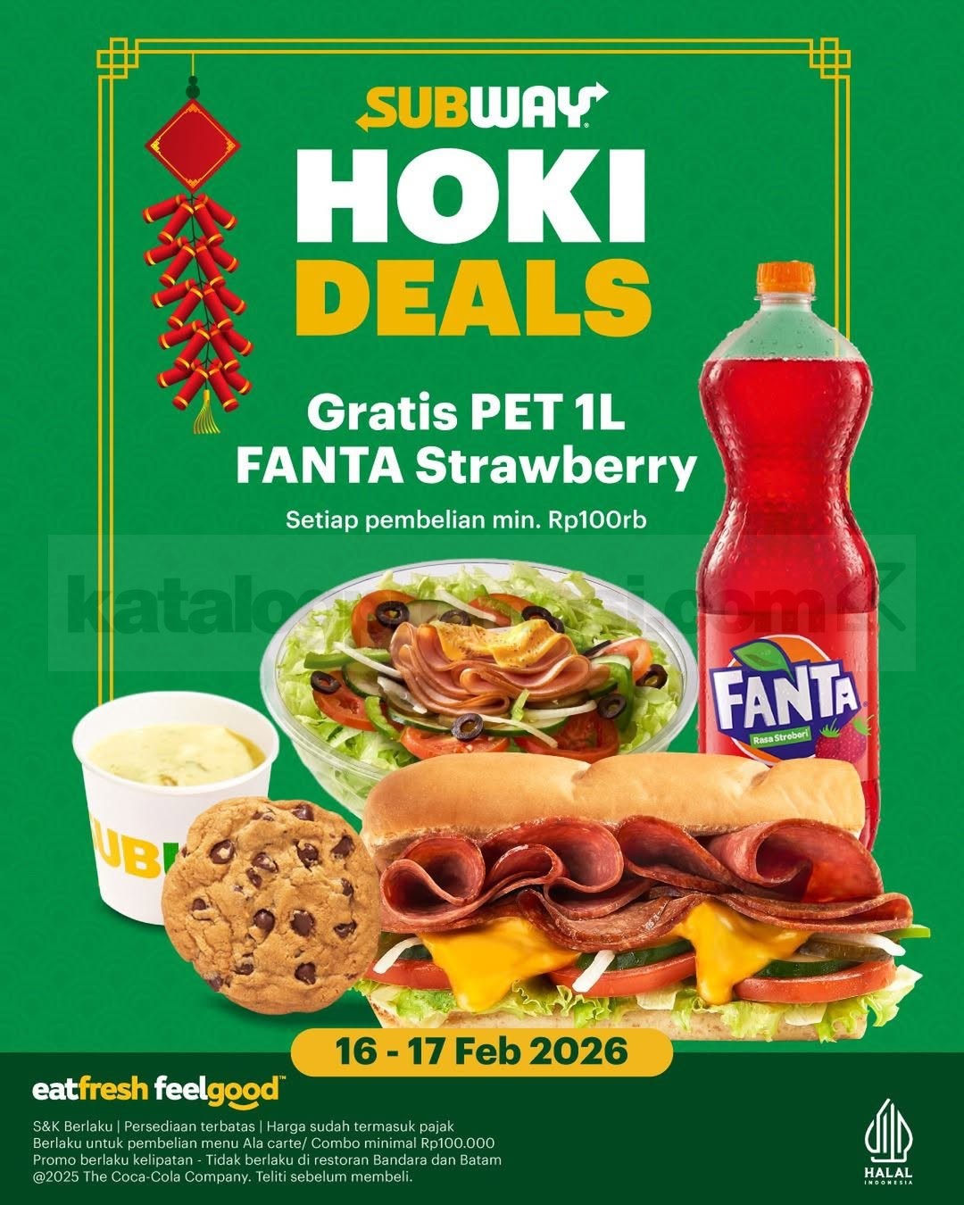 Promo Subway HOKI DEALS Gratis Fanta Strawberry tiap belanja Rp. 100.000 berlaku mulai tanggal 16 Februari 2026 – 17 Februari 2026 di seluruh outlet