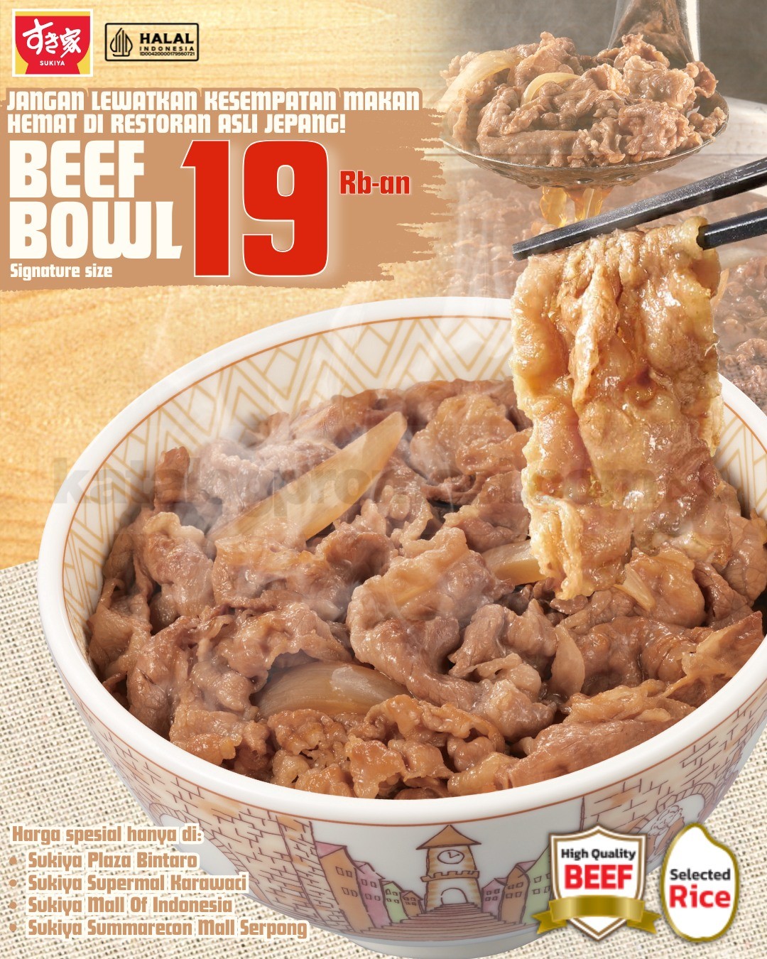 Nikmati Promo Sukiya Beef Bowl Signature Size Rp. 19.000 di outlet terdekat dan rasakan langsung kenikmatan menu best seller dengan harga yang lebih bersahabat.