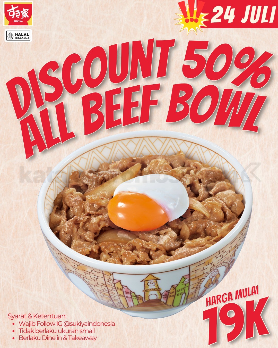 - Promo berlaku di seluruh outlet Sukiya kecuali Sukiya Kidzania.