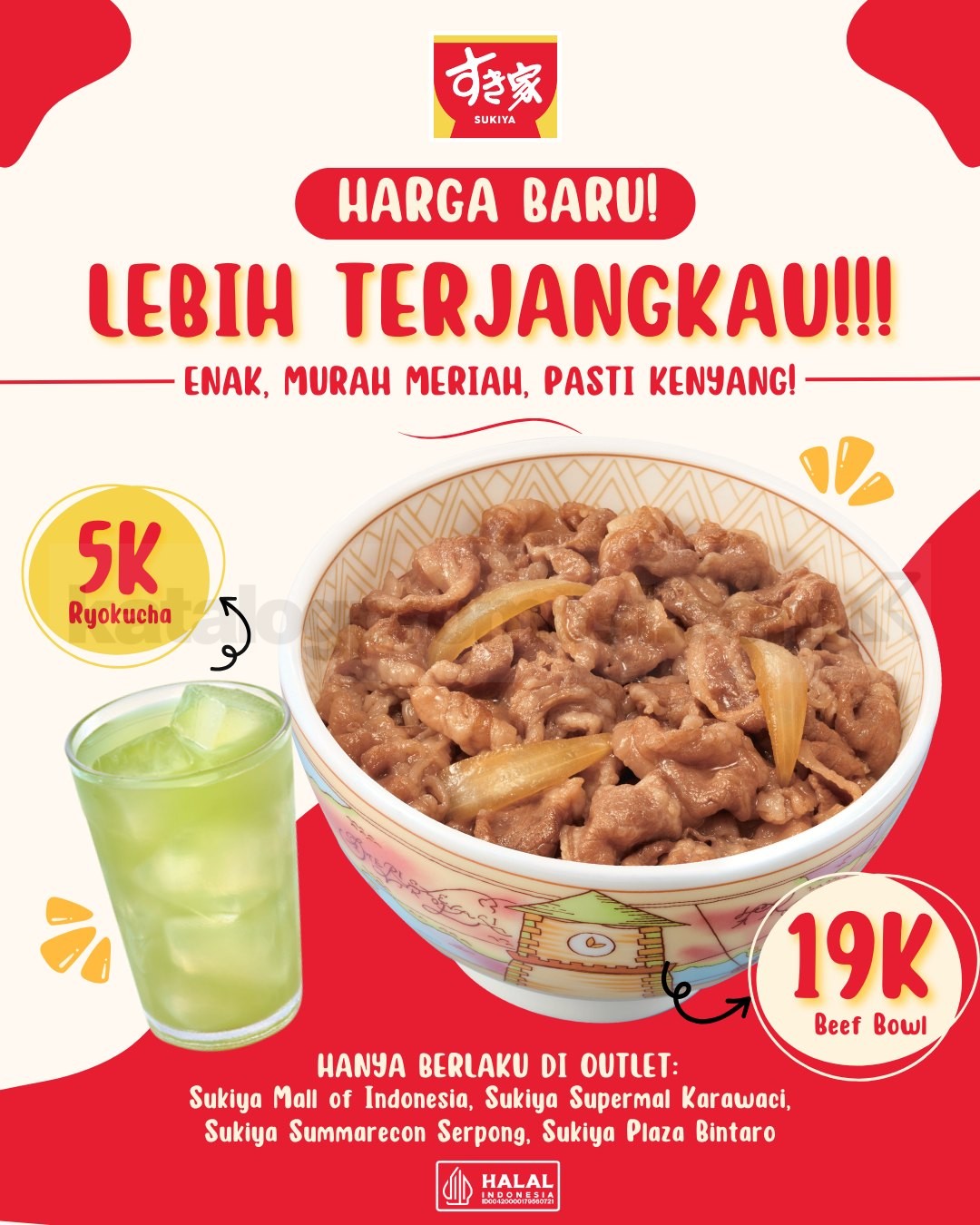 Harga baru berlaku di Sukiya Mall of Indonesia, Plaza Bintaro, Supermal Karawaci, dan Summarecon Mal Serpong.