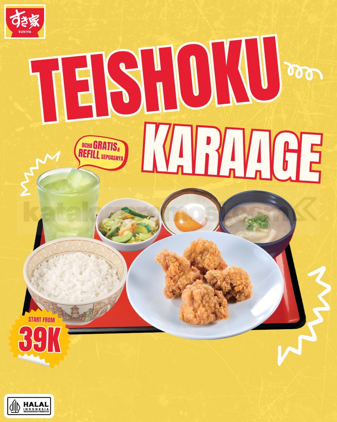 β¨ TEISHOKU KARAAGE β¨ Paket lengkap ala Jepang yang bikin puas! Dapatkan nasi, karaage krispi, Japanese pickle, Half boiled egg, miso soup, dan Ocha GRATIS & refill sepuasnya! π΅ Mulai dari 39K aja! Yuk cobain sekarang ke Sukiya! π₯