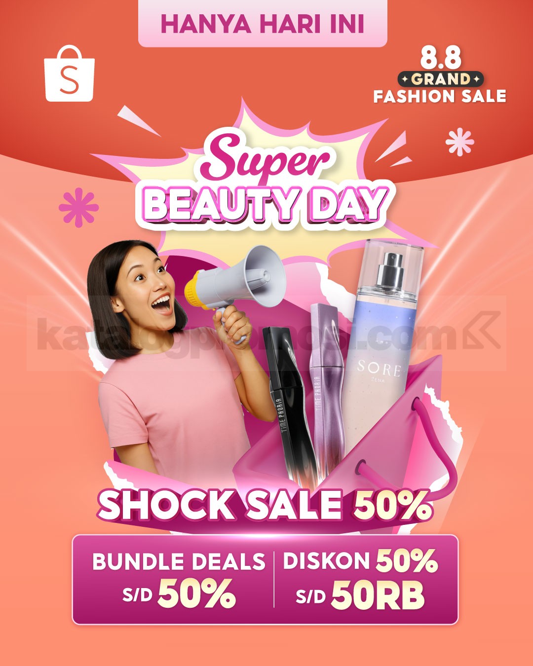 Jangan sampai kelewatan Promo Super Beauty Day di Shopee 8.8 Grand Fashion Sale hari ini! Langsung kunjungi shopee.co.id, cek promonya, dan belanja sekarang!