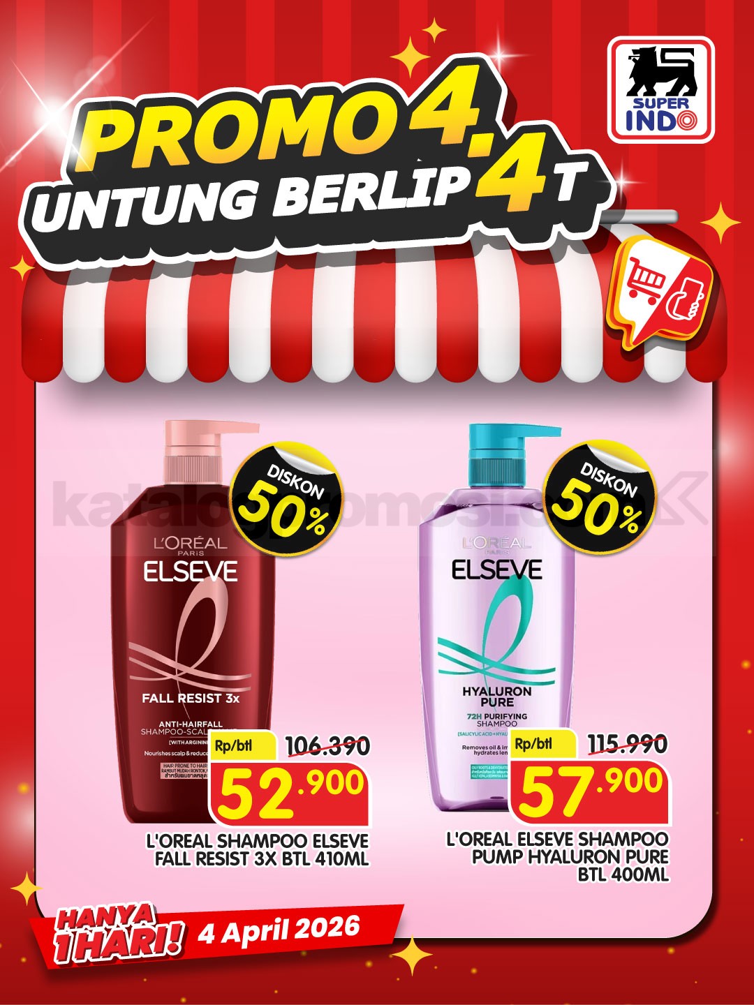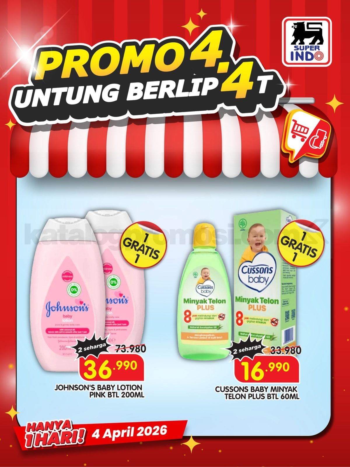 Semua harga berlaku hanya 1 hari, tanggal 4 April 2026 dan bisa dibeli langsung di toko atau lewat MySuperIndo. Beberapa produk juga pakai format beli 2 harga khusus dalam satu transaksi.