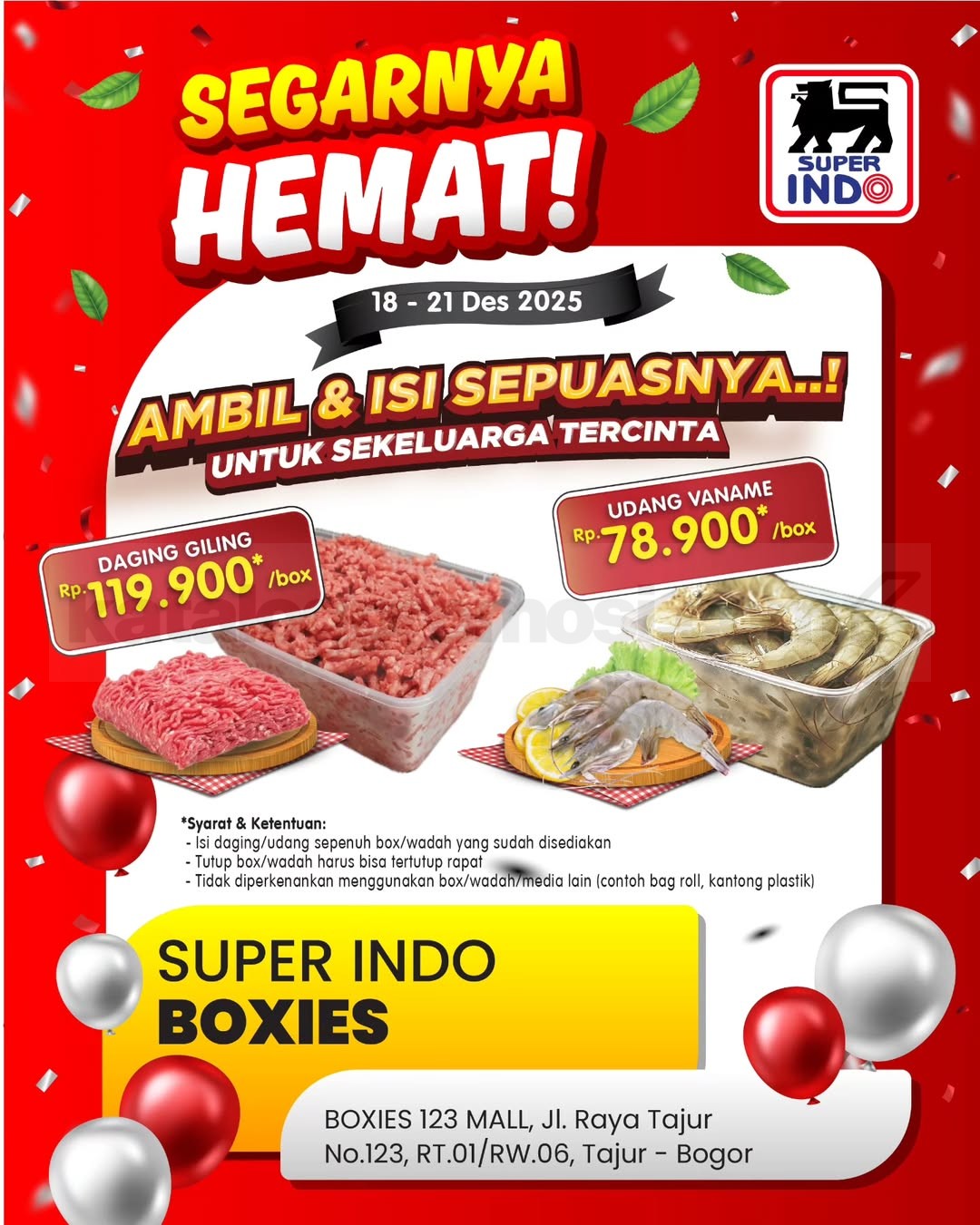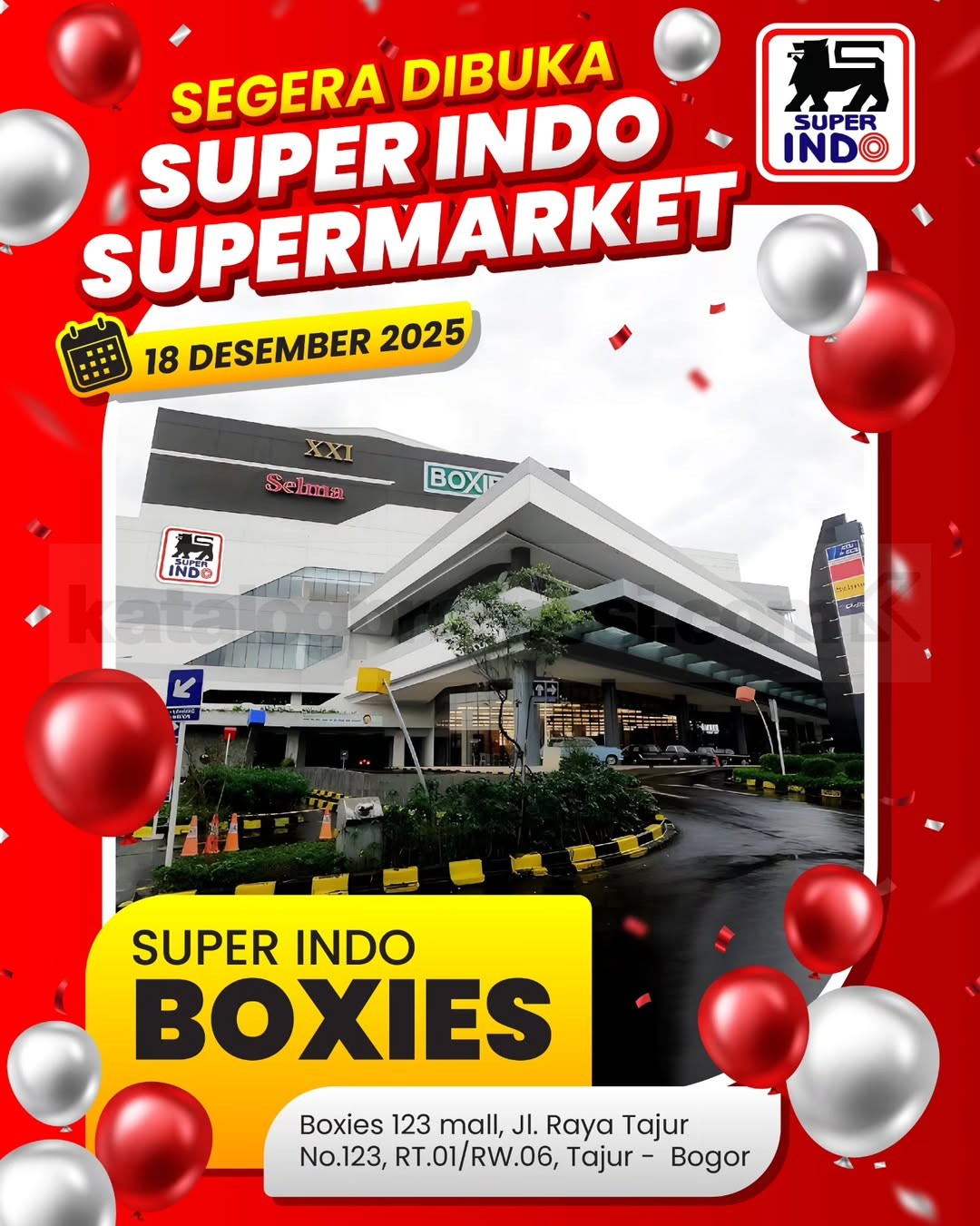 Promo SUPER INDO Opening Toko Boxies Tajur Bogor berlaku mulai tanggal 18-24 Desember 2025. di Bogor dengan toko baru dan berbagai promo belanja SUPER HEMAT.