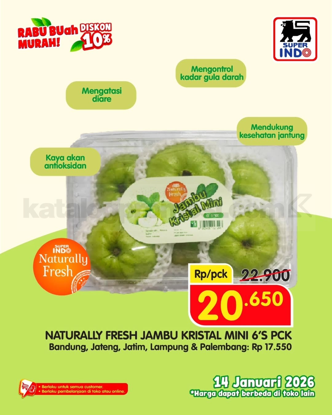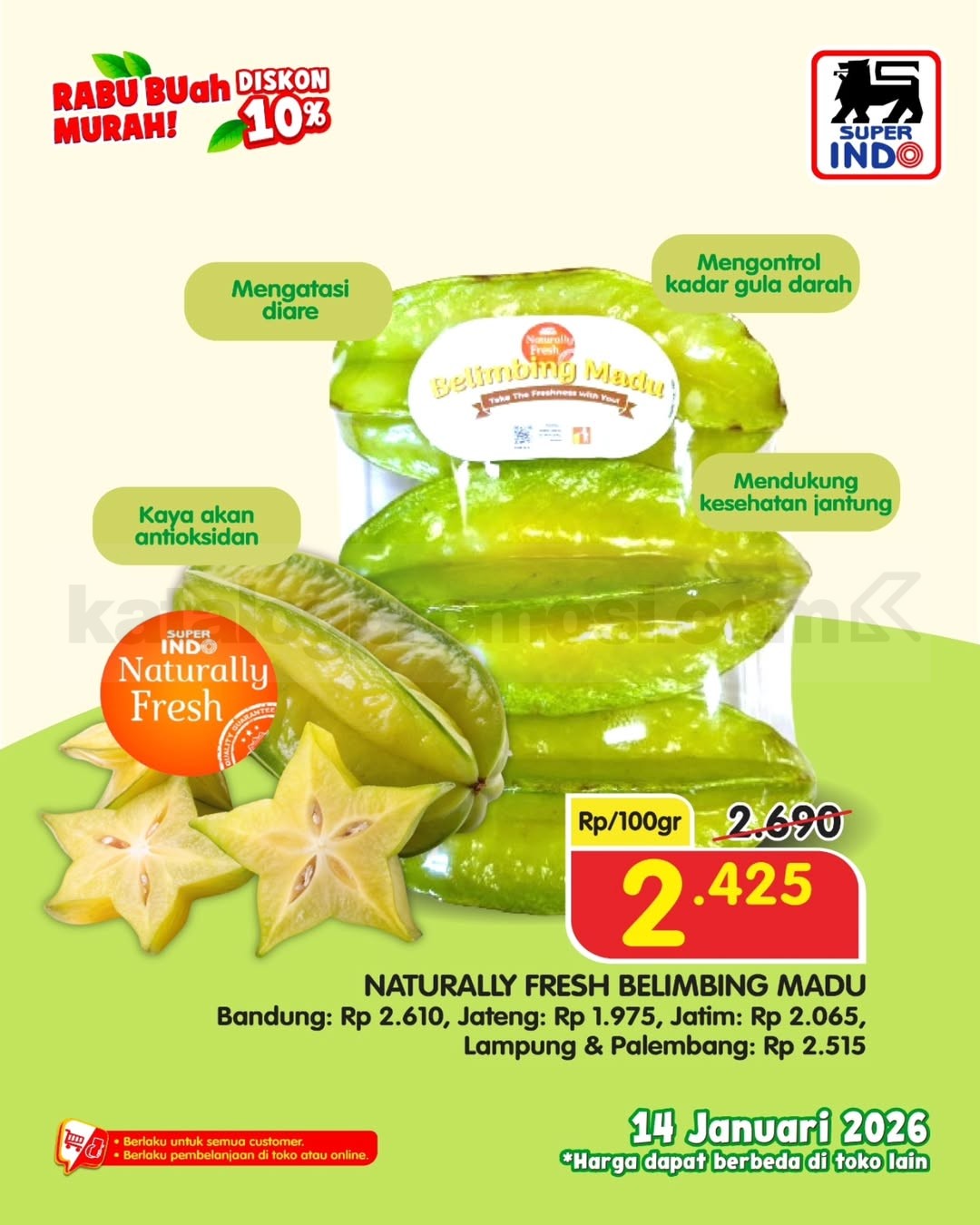 Promo Superindo Rabu Buah Murah! Diskon 10% untuk buah segar pilihan di seluruh cabang dan online. Hanya 1 hari tanggal 14 Januari 2026