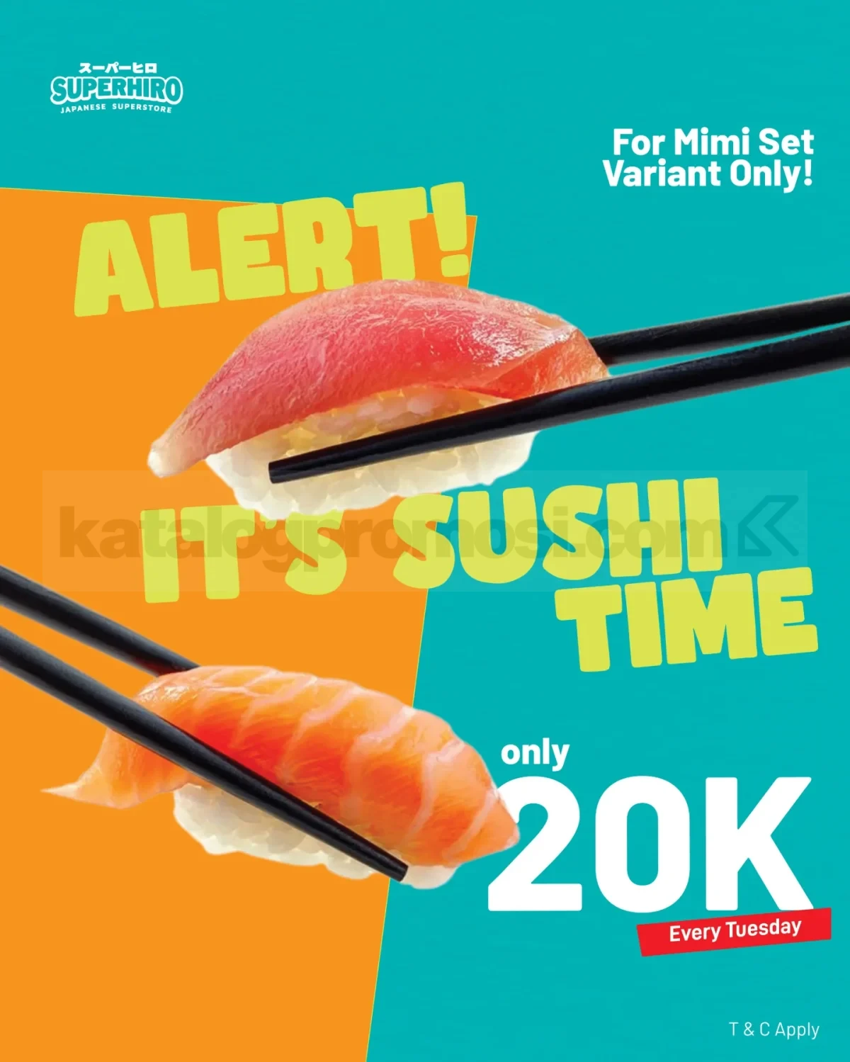 Promo Superhiro PIK2 Sushi Time Mimi Set Rp20.000 berlaku setiap Selasa dengan harga spesial untuk pecinta sushi.