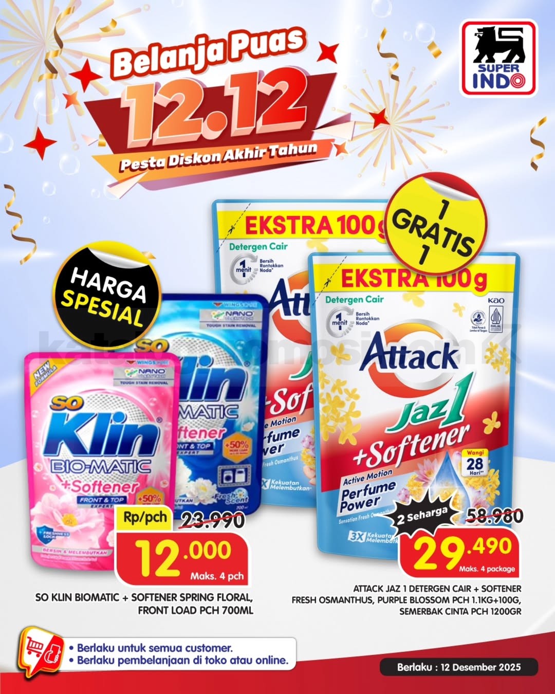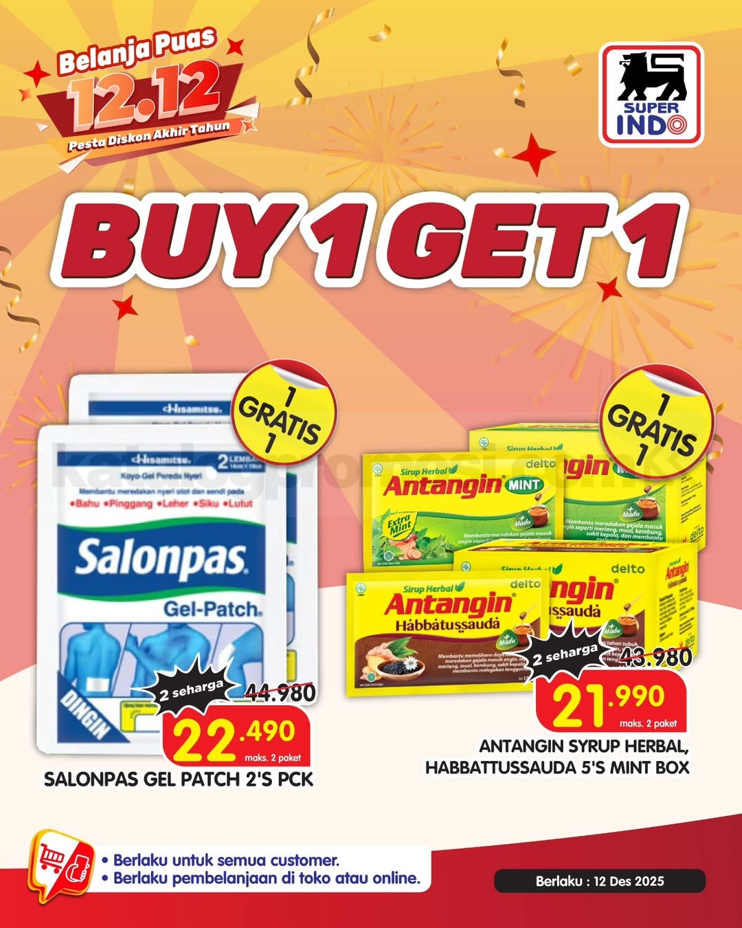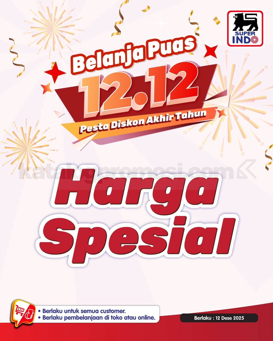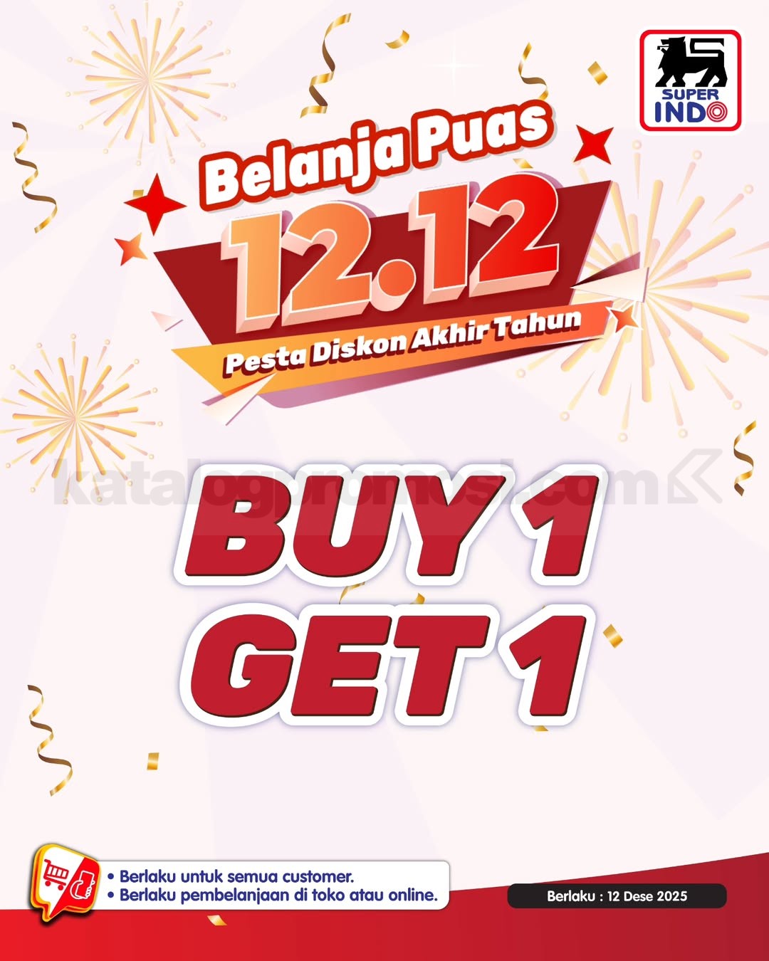 Promo Superindo 12.12 SUPER SALE BELI 1 GRATIS 1 hanya di tanggal 12 Desember 2025. Yuk serbu promo harian dan hemat besar untuk kebutuhan rumahmu!