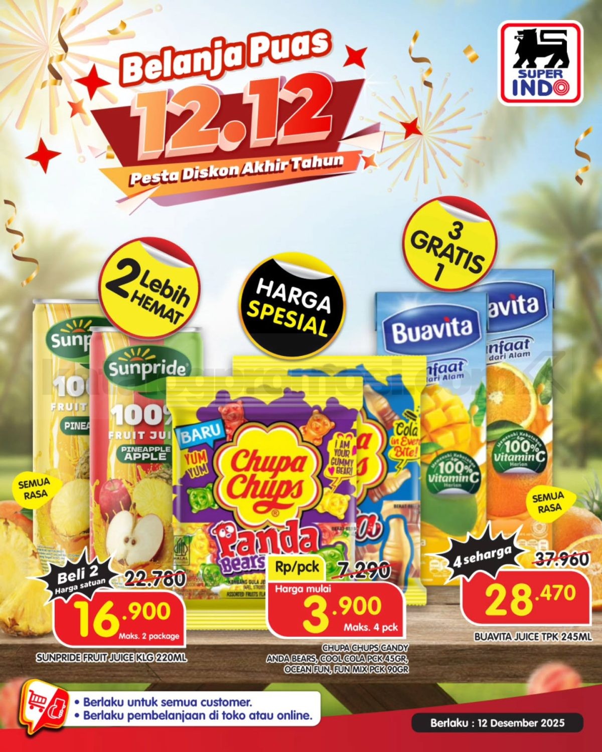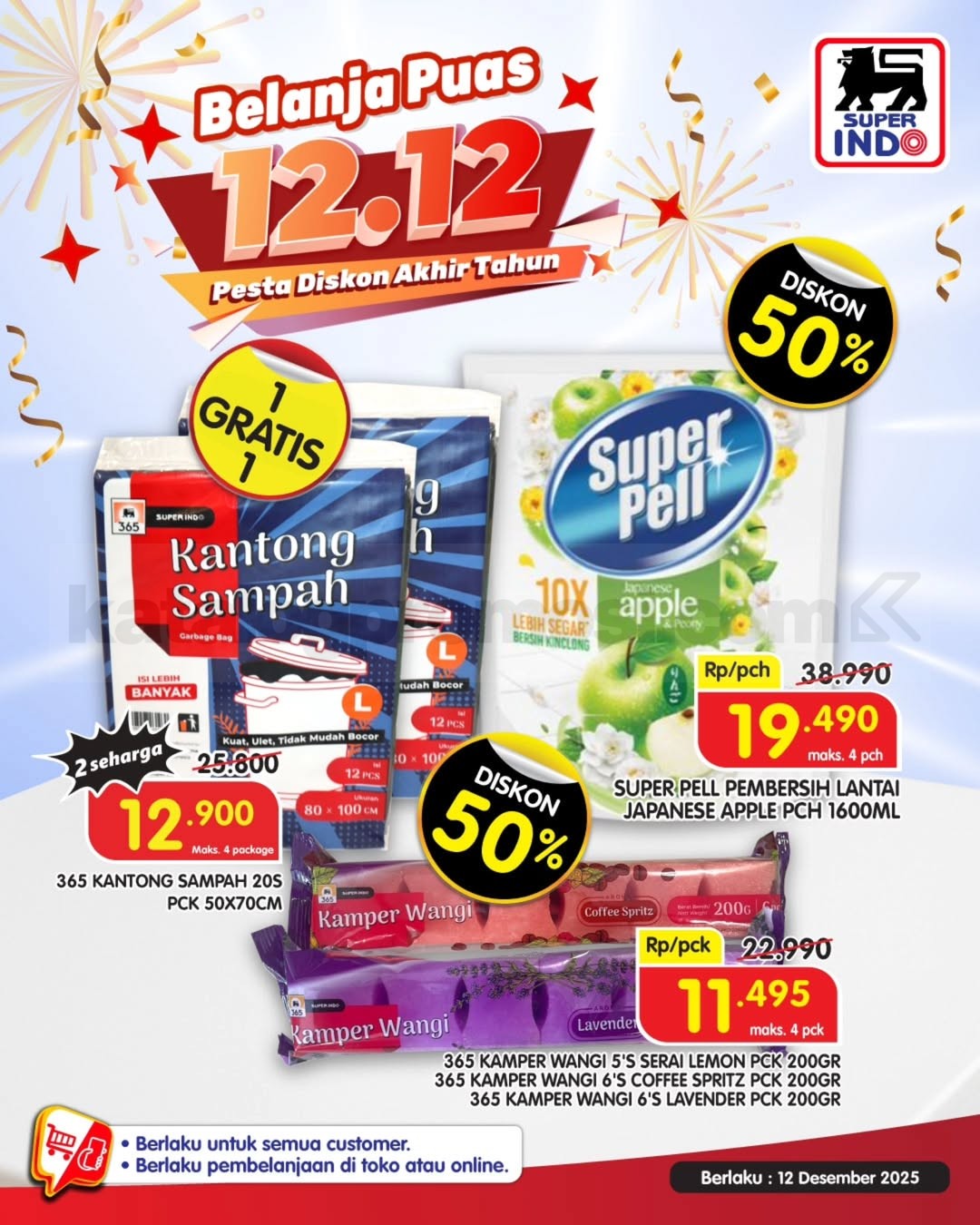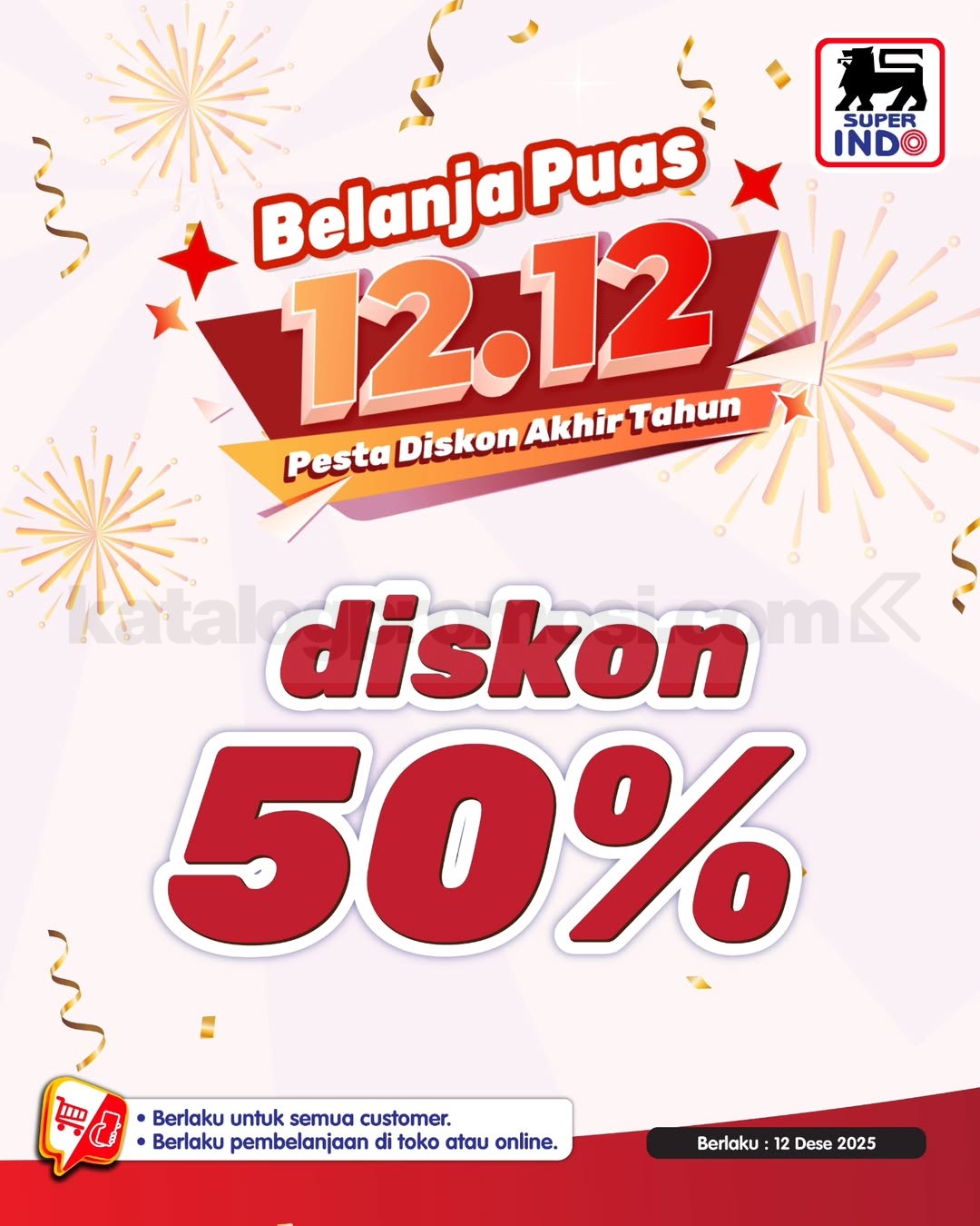 π Cek gambar flyer promo Superindo 12.12 SUPER SALE di bawah ini untuk lihat semua diskon 12.12 dan penawaran kebutuhan harian lainnya!