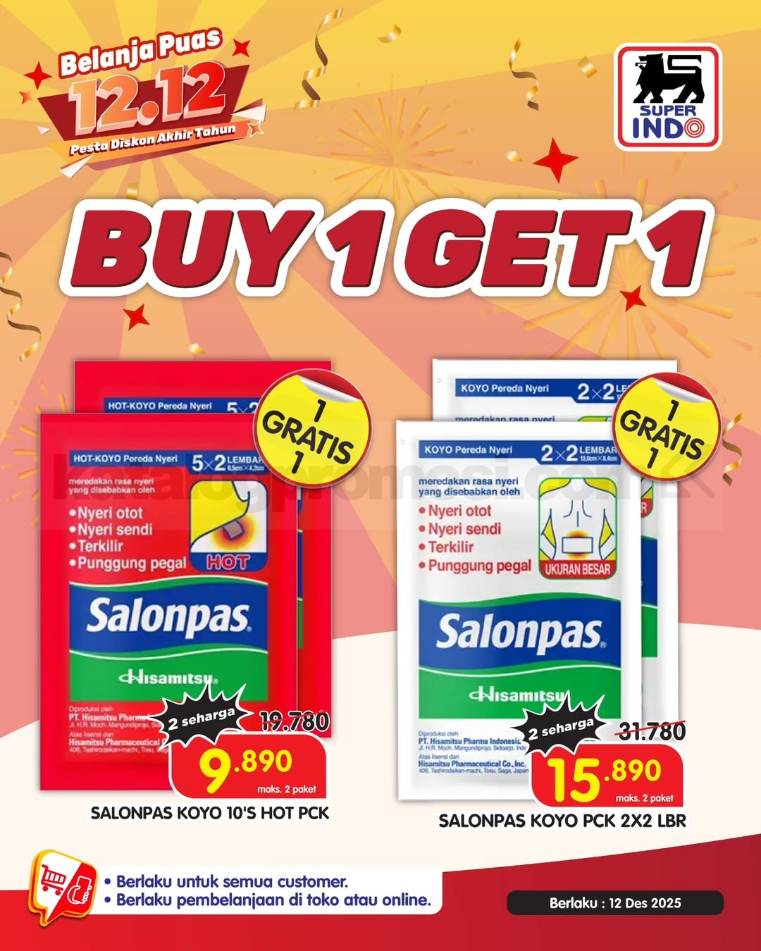 Syarat dan Ketentuan Promo Superindo 12.12 SUPER SALE BELI 1 GRATIS 1: