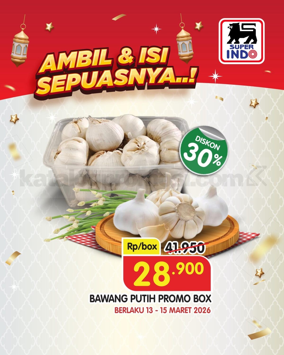 - Promo Ambil & Isi Sepuasnya bawang putih berlangsung 13 β 15 Maret 2026.