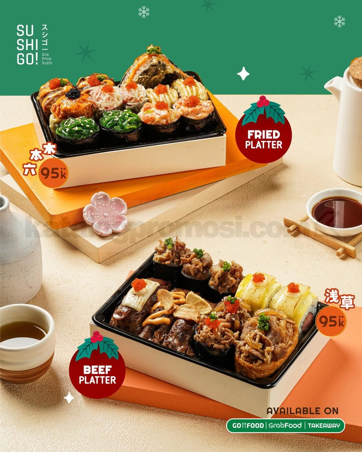 👉 Cek gambar Promo Sushi Go! Platter mulai Rp. 65.000++ di bawah ini untuk lihat pilihan menu dan info harga platter yang cocok buat berbagi.