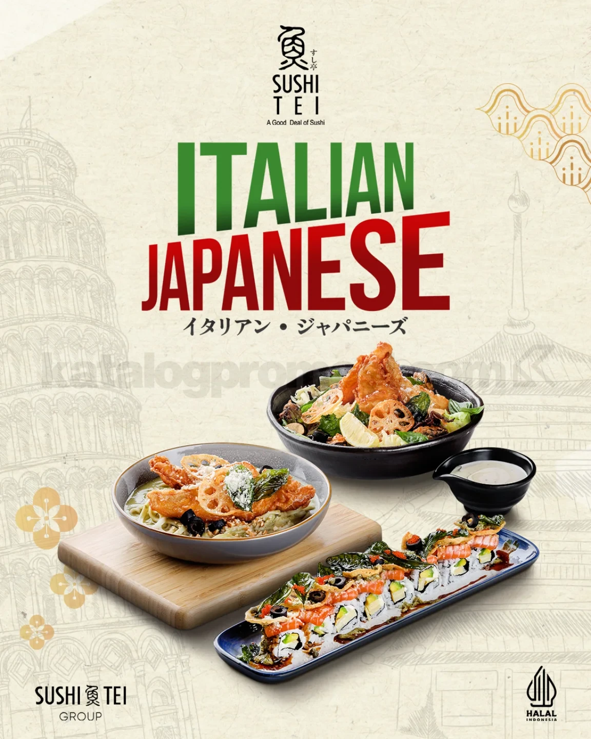 Promo Sushi Tei NEW Italian Japanese menu musiman fusion Italia dan Jepang berlaku mulai tanggal 9 Februari 2026 di seluruh outlet Sushi Tei Indonesia.