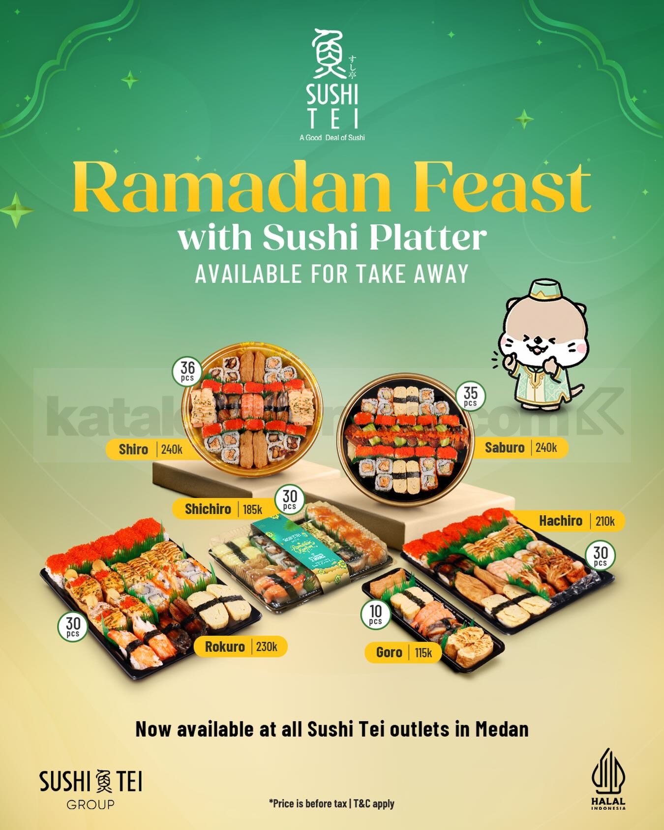 Promo Sushi Tei Ramadan Feast Sushi Platter tersedia selama Ramadan di outlet Sushi Tei Medan untuk paket sushi platter mulai Rp. 115.000.