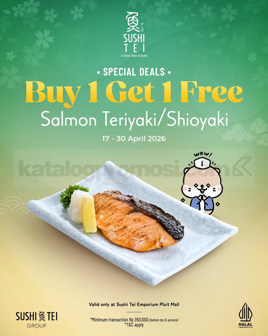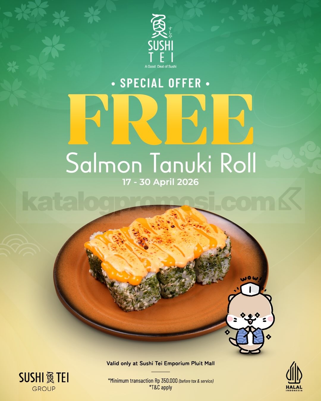 - Promo hanya berlaku untuk makan di tempat (dine-in) di Sushi Tei Emporium Pluit Mall.
