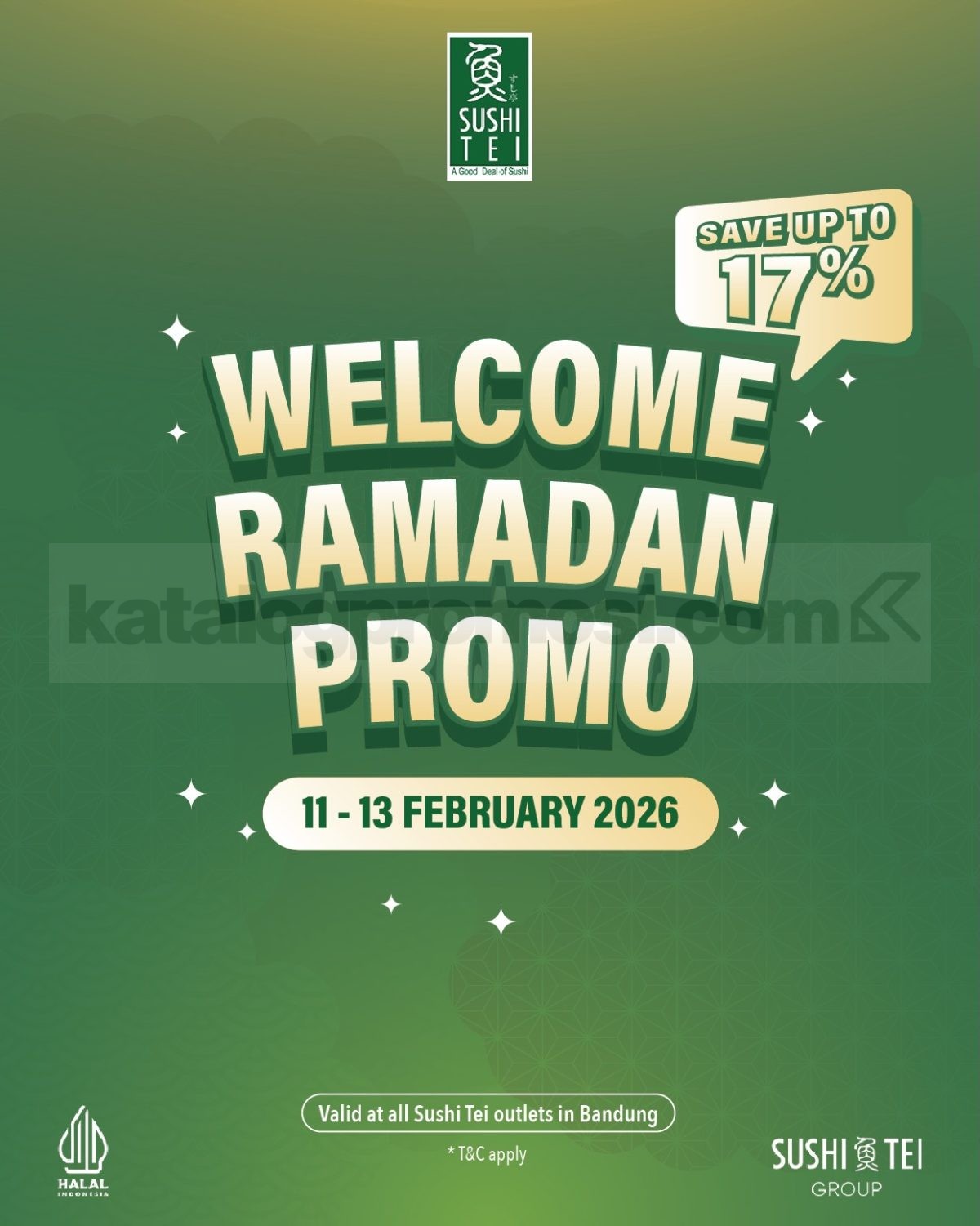 Promo Sushi Tei Welcome Ramadan Set Menu diskon hingga 17% untuk menu lengkap munggahan + berlaku 11–13 Februari 2026 di semua Sushi Tei Bandung.