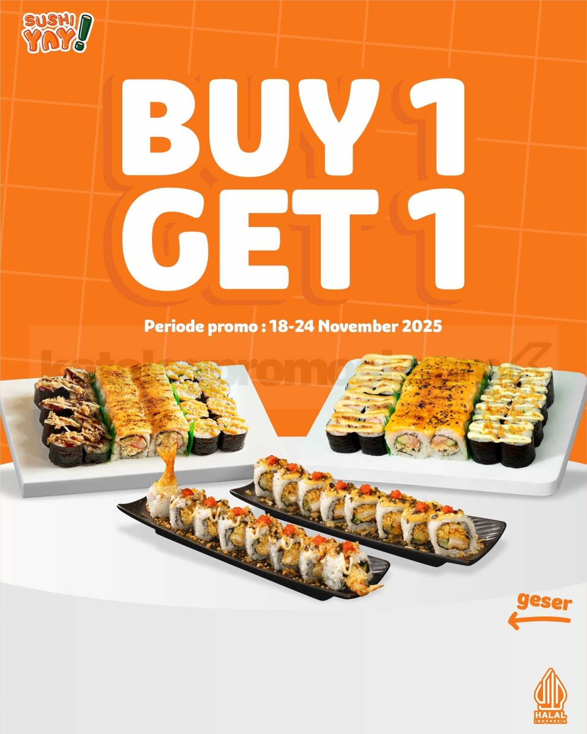 pastikan kamu manfaatkan penawaran Sushi Yay Buy 1 Get 1 Premium Roll selama periode berlangsung agar tidak ketinggalan menu gratisnya.