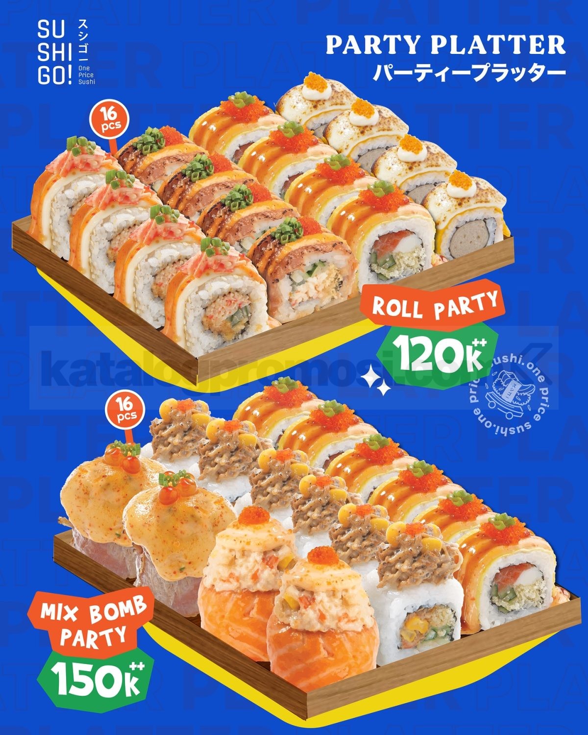 Every party feels better with sushi vibes! 🎉 Buat yang lagi cari menu rame-rame, sekarang ada Promo Sushi Go Party Platter yang bikin kumpul makin lengkap. Cukup klik via Takeaway, GoFood, atau GrabFood, kamu bisa dapetin platter sushi isi 16 pcs dengan harga yang super hemat 🤩.