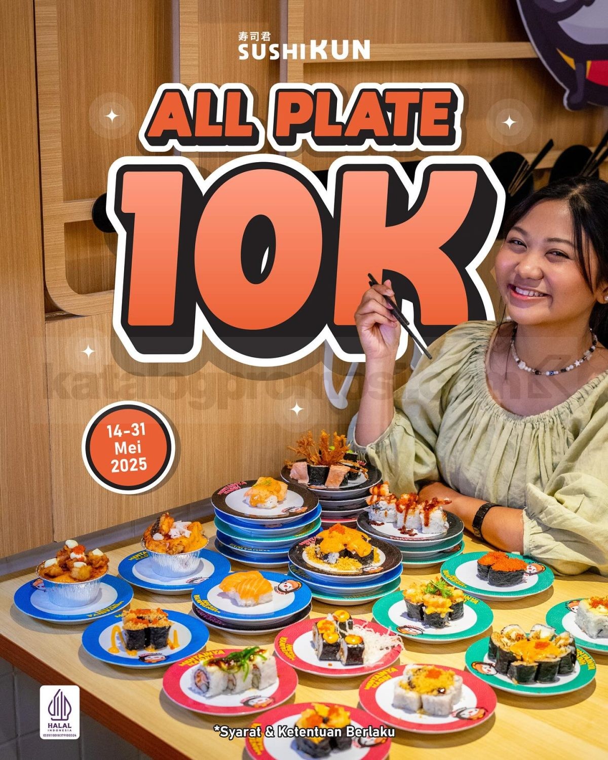 Promo ini berlaku khusus untuk makan di tempat di Sushikun Cityplaza Jatinegara. Selama periode promo, semua sushi yang tersedia di buku menu dan conveyor belt bisa kamu nikmati dengan harga Rp. 10.000 per piring. Momen opening ini cocok banget buat kamu yang ingin ajak orang tersayang menikmati sushi bareng tanpa perlu mikir panjang soal budget.