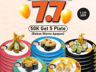 Untuk mendapatkan promo ini, pelanggan harus melakukan pembelian minimal 5 piring sushi, dengan varian bebas.