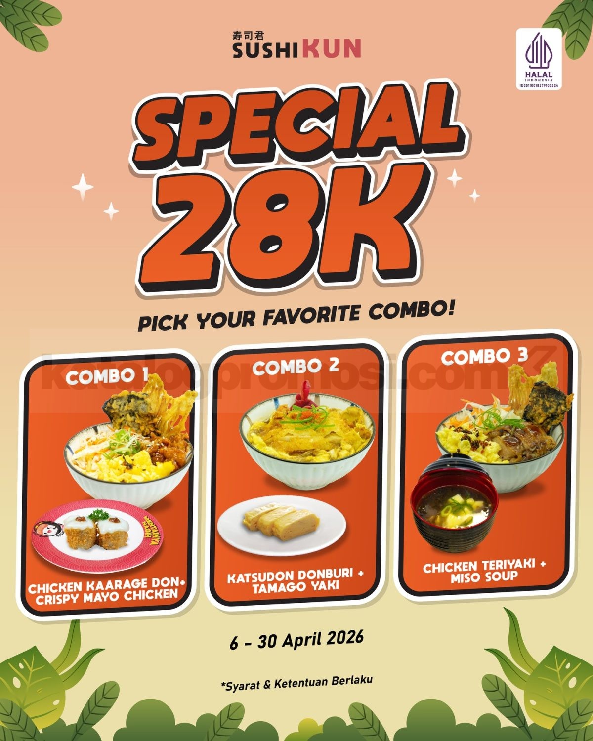 Promo Sushikun Paket Combo Special Donburi Cuma Rp. 28.000 nikmati paket menu Jepang lengkap berlaku 6 April – 30 April 2026 di Jawa Timur