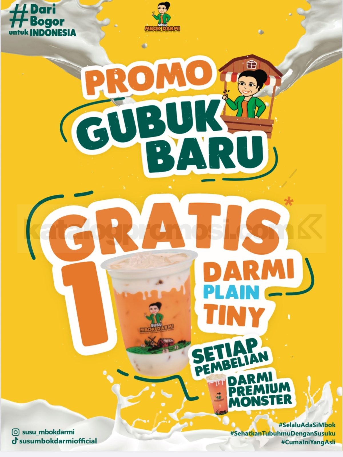 👉 Cek gambar Promo Susu Mbok Darmi Gubuk Baru Gratis 1 Darmi Plain Tiny di bawah ini untuk lihat detail visual promo pembukaan gubuk barunya