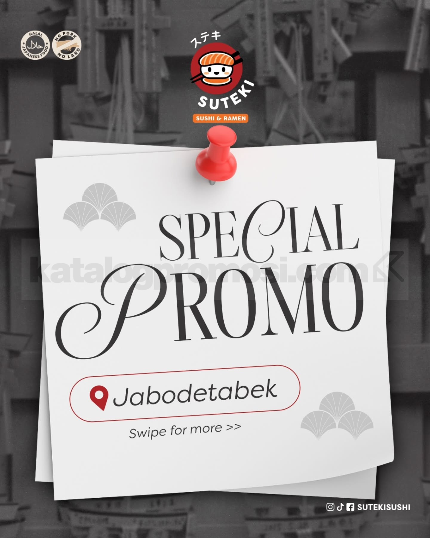 Spesial buat kamu warga Jabodetabek, Suteki punya promo Ramadan yang sayang banget buat dilewatin! 😱 Promo Suteki Sushi Special Triple Great Rp. 99.000 ini bikin momen buka puasa makin seru karena kamu bisa pilih 3 menu favorit dalam satu paket hemat.