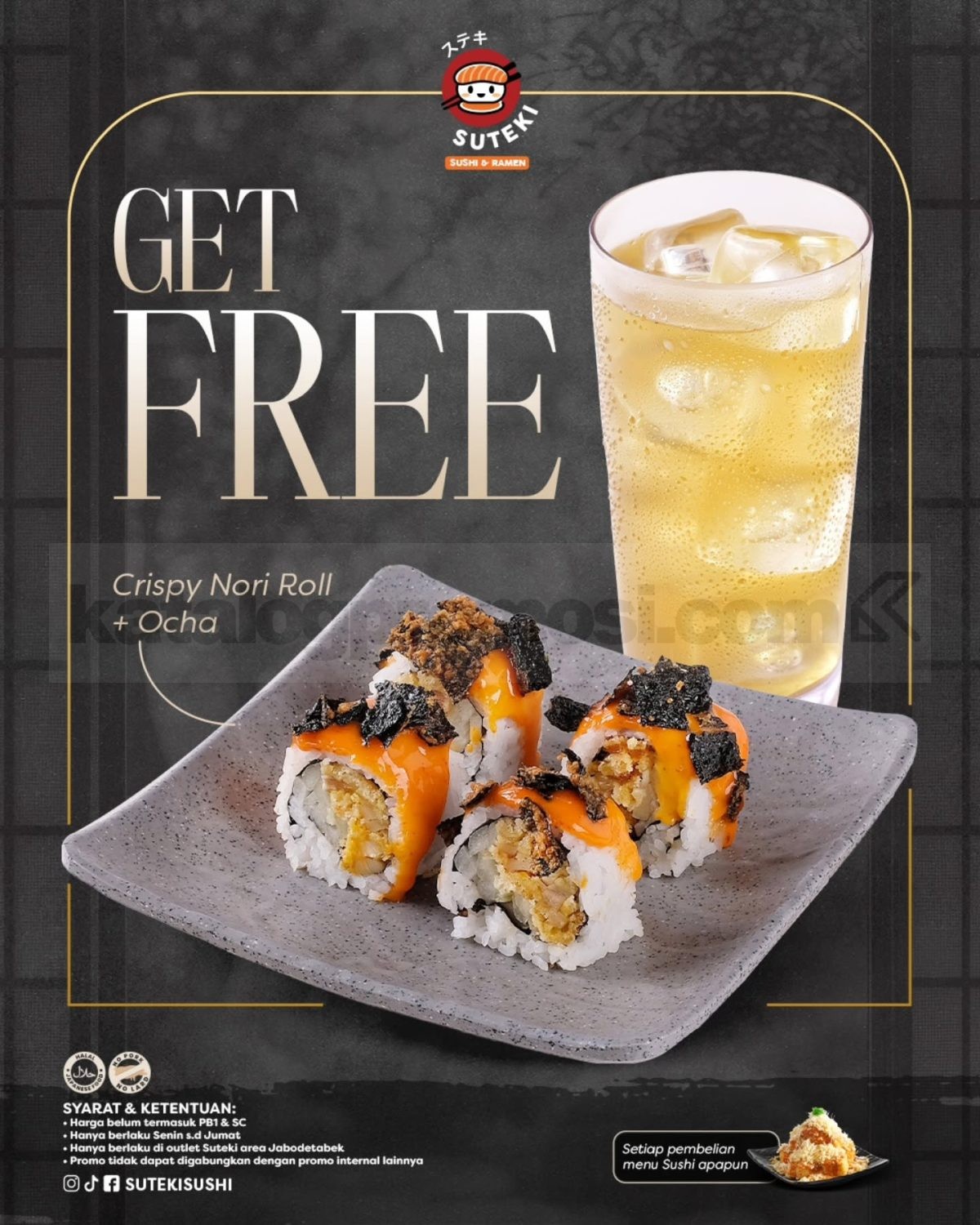 Tersedia tambahan FREE Crispy Nori Roll + Ocha sesuai ketentuan outlet.