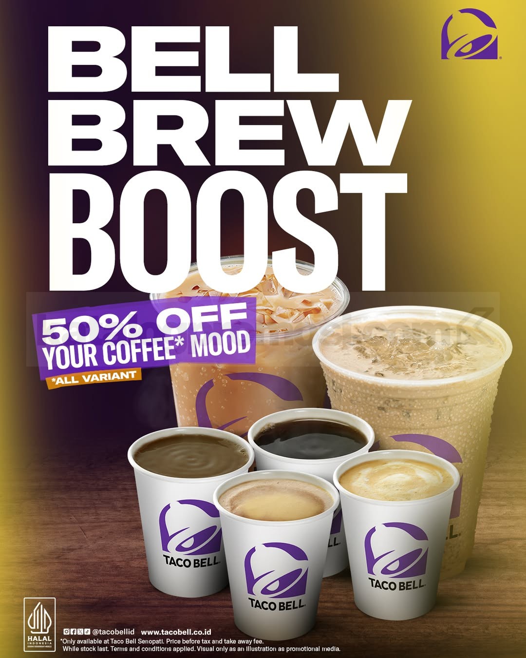 Promo Taco Bell Diskon 50% Coffee semua varian hanya di Senopati! Berlaku sampai 31 Oktober 2025.