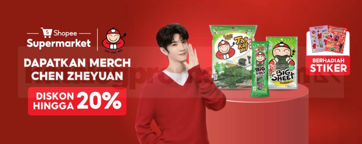 Promo Tao Kae Noi Chen Zheyuan Bundle Pack Bonus Sticker diskon hingga 20% dengan pembelian bundle di Shopee Supermarket, berlaku mulai tanggal 25 Januari 2026 – 31 Januari 2026.