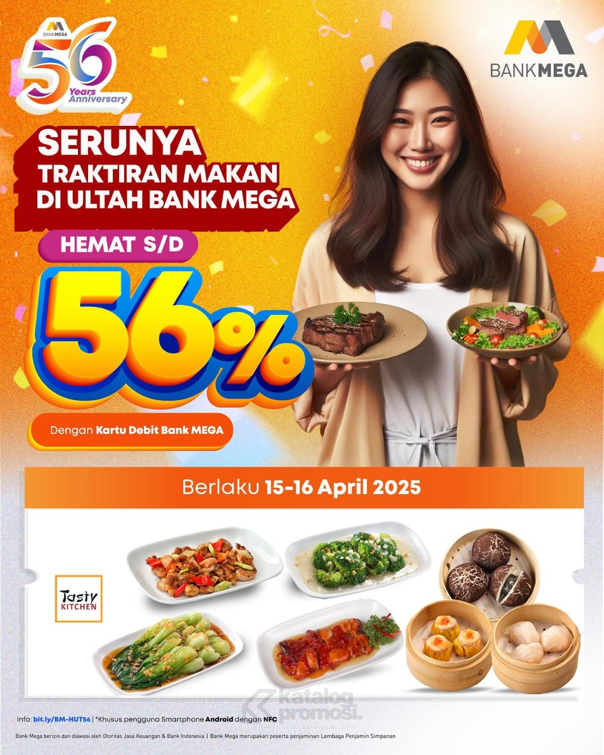 Promo Tasty Kitchen Spesial Ultah Bank Mega Diskon Hingga 56% berlaku mulai tanggal 15 – 16 April 2025
