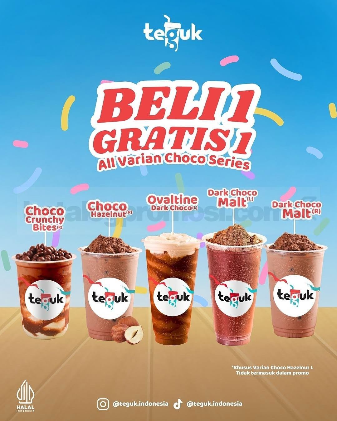 Promo Teguk Beli 1 Gratis 1 Choco Series hadir 11-13 Juli 2025 jam 15-17 WIB. Nikmati semua varian Choco Series cuma di gerai Teguk tertentu.
