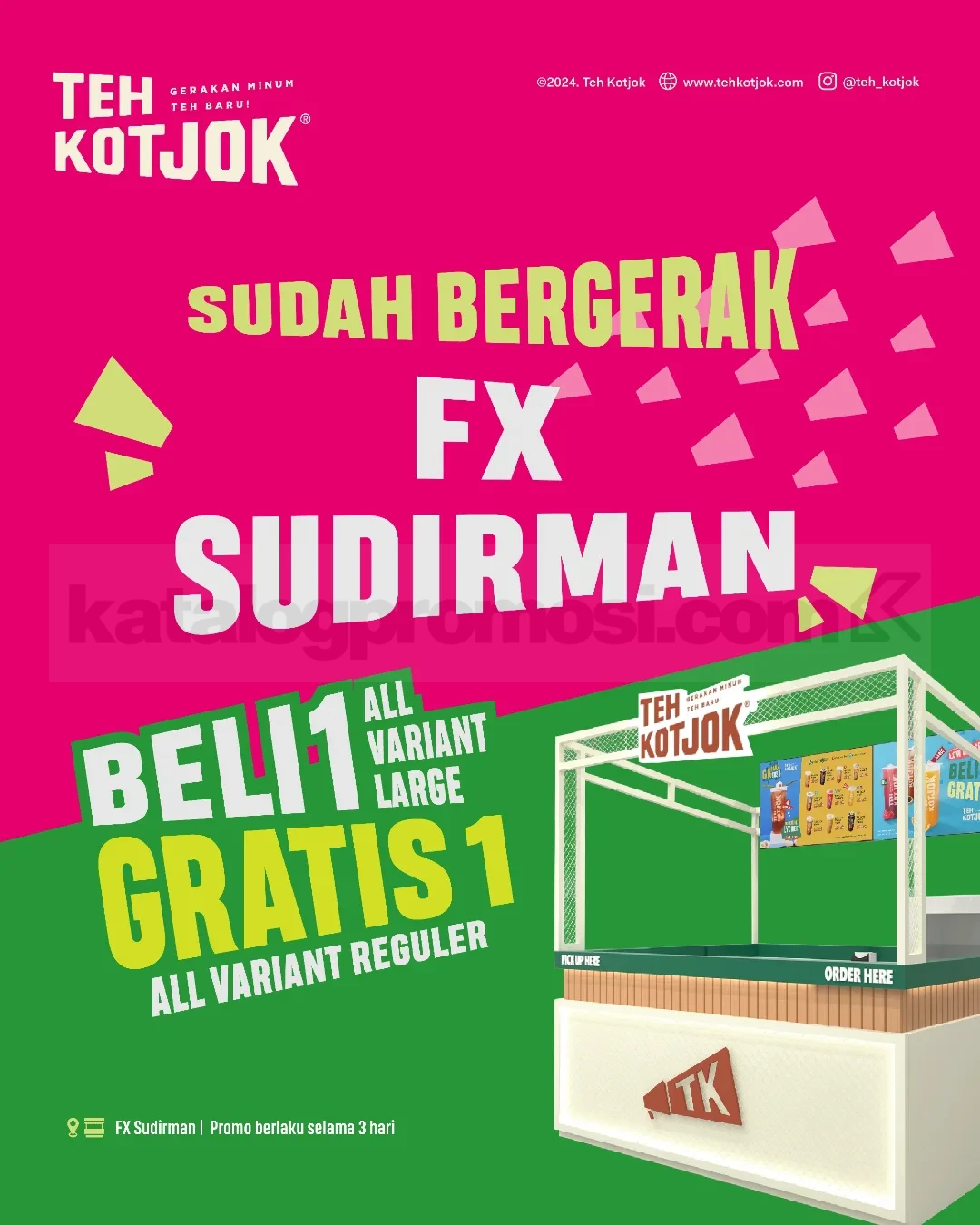 π Cek gambar Promo Teh Kotjok Opening FX Sudirman Beli 1 Gratis 1 di bawah ini untuk lihat detail serunya dan koleksi merchandisenya