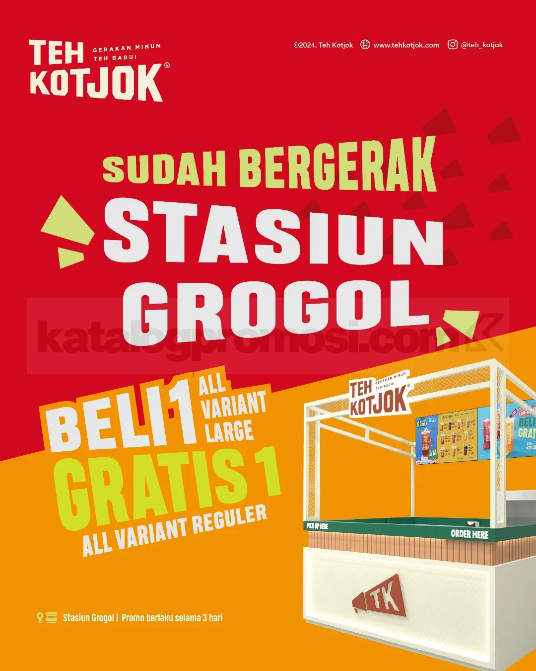Promo Teh Kotjok Opening Stasiun Grogol Beli 1 Gratis 1 ini pas buat kamu yang sering lewat area stasiun dan ingin menikmati minuman segar dengan benefit ekstra tanpa ribet.
