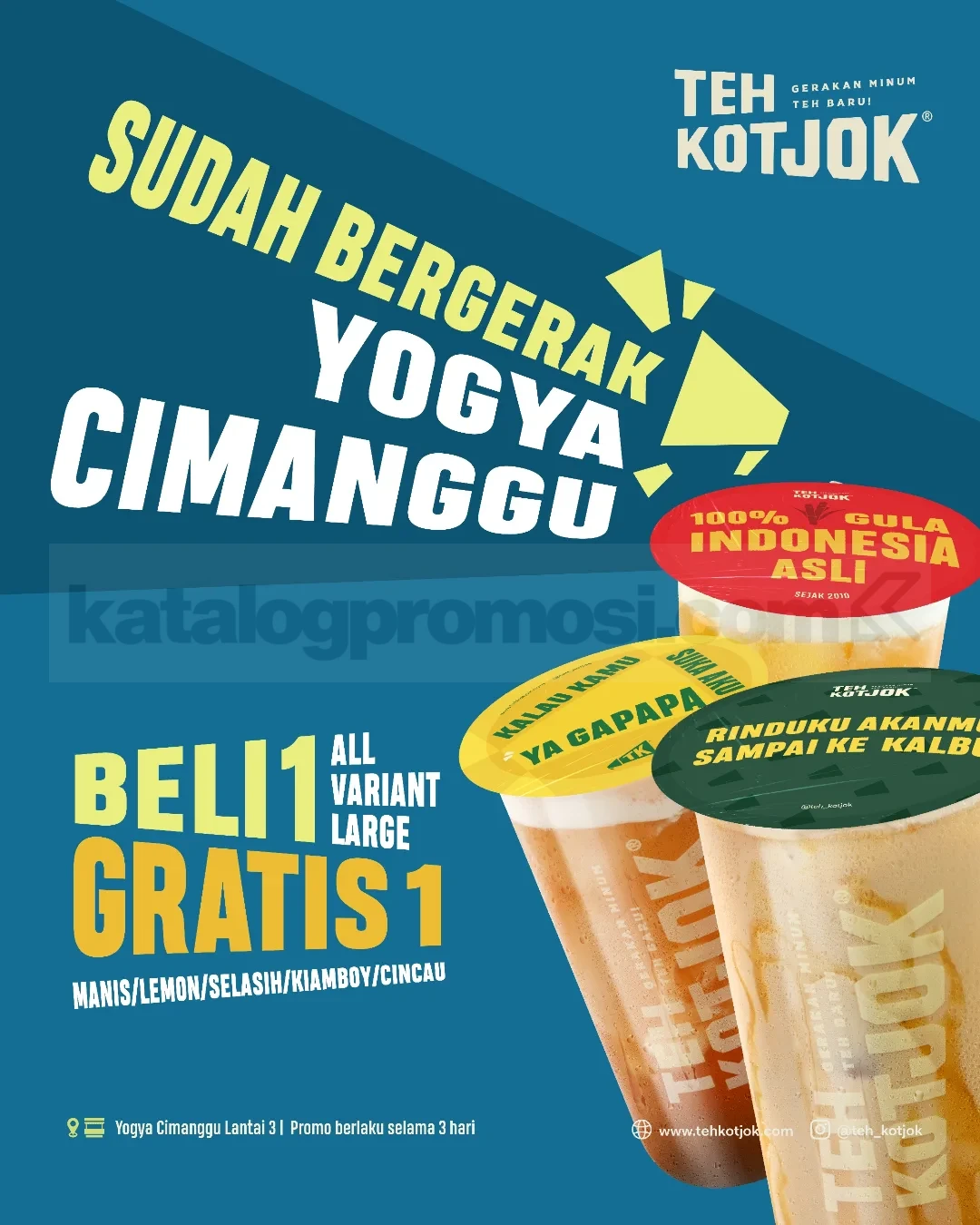 👉 Cek gambar Promo Teh Kotjok Opening Yogya Cimanggu Beli 1 Gratis 1 di bawah ini untuk lihat detail bonus dan pilihan variannya yang bikin pengen langsung beli!