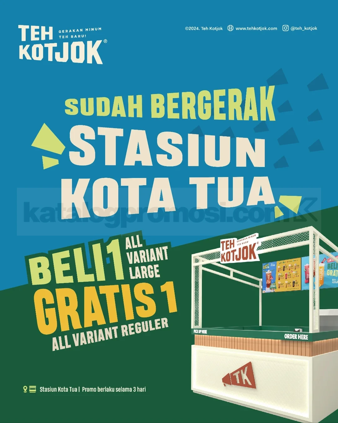 Tea time jadi makin seru! ๐ Pos Teh Kotjok baru saja dibuka di Stasiun Jatinegara dan merayakan opening dengan promo spesial. Dengan Promo Teh Kotjok Opening Stasiun Jatinegara Beli 1 Gratis 1, kamu bisa mendapatkan 1 Teh Kotjok All Variant Large dan langsung gratis 1 All Variant Regular.
