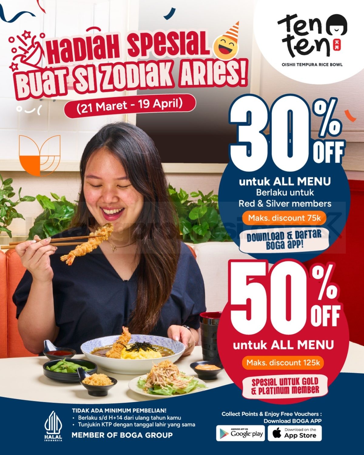 Promo TENTEN Aries Birthday Treats Diskon Hingga 50% periode 21 Maret β 19 April 2026 diskon untuk member tertentu tanpa minimum pembelian dengan klaim melalui aplikasi.