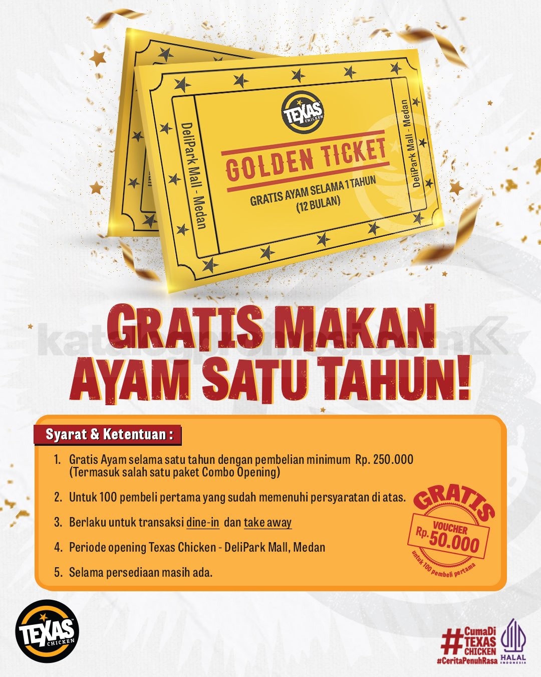 Promo berlaku selama periode opening Texas Chicken DeliPark Mall Medan.