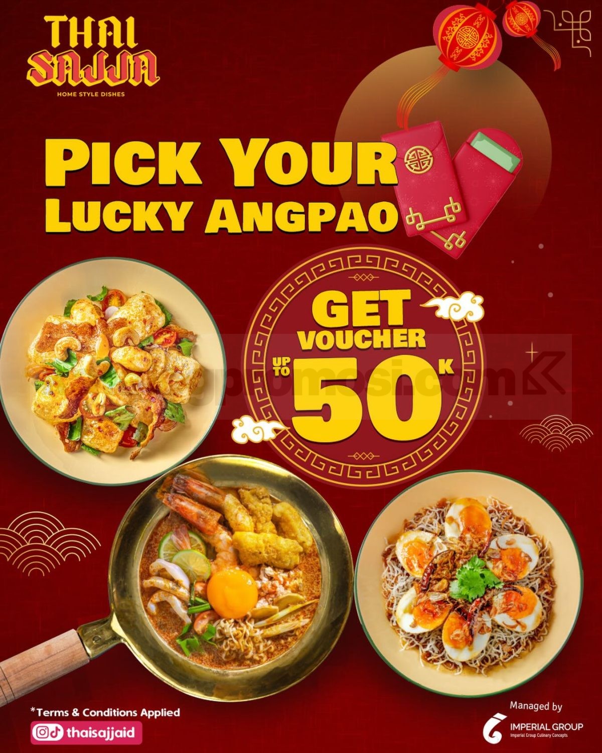 Kalau lagi makan bareng di Thai Sajja, sekalian manfaatkan kesempatan ambil Lucky Angpao dan bikin kunjungan berikutnya terasa lebih menguntungkan.