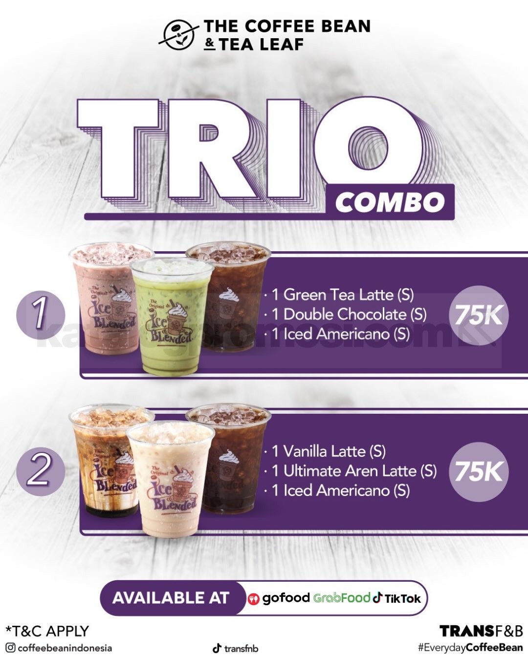 - Promo berlaku selama periode yang ditentukan oleh pihak The Coffee Bean & Tea Leaf.